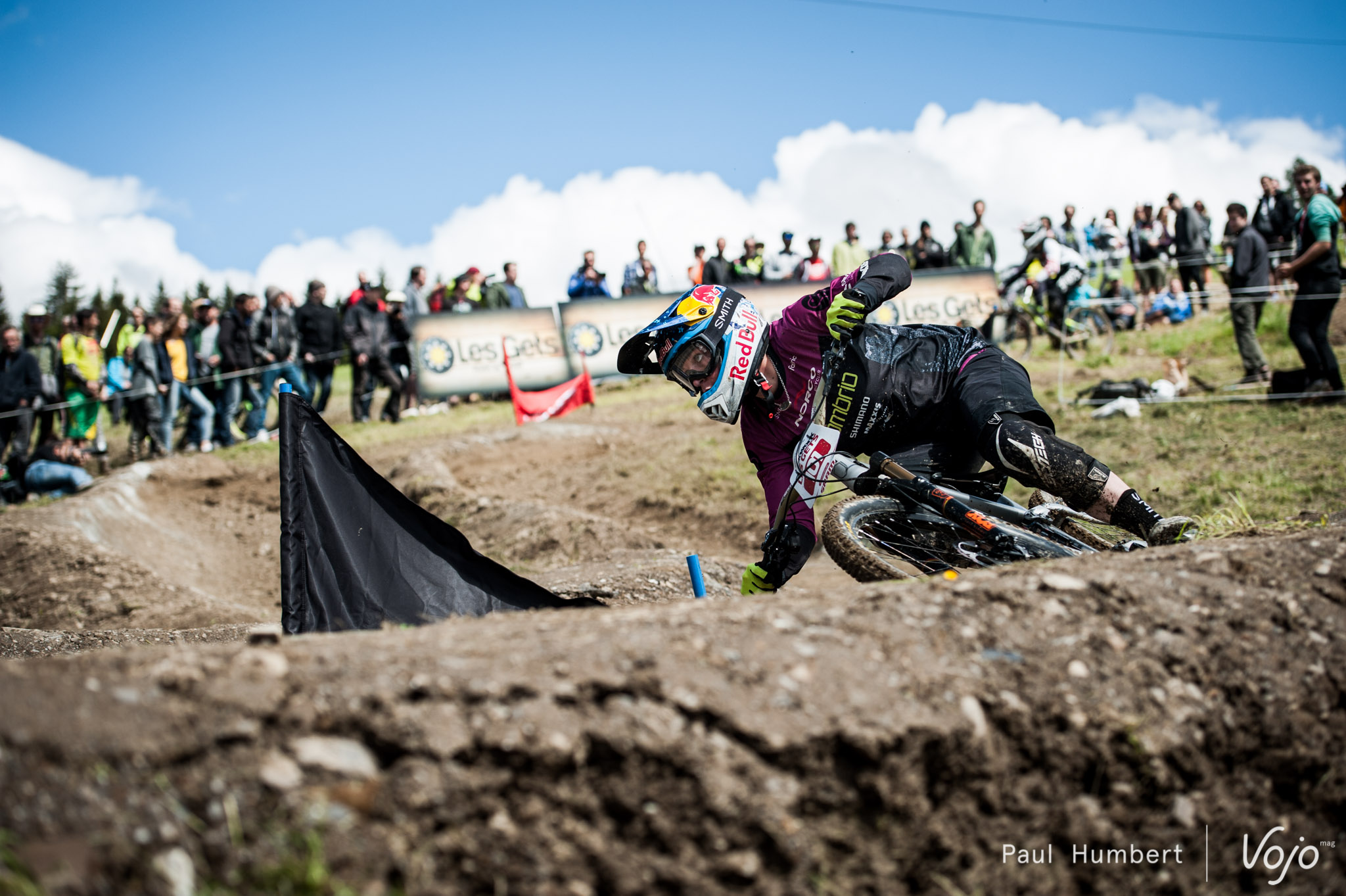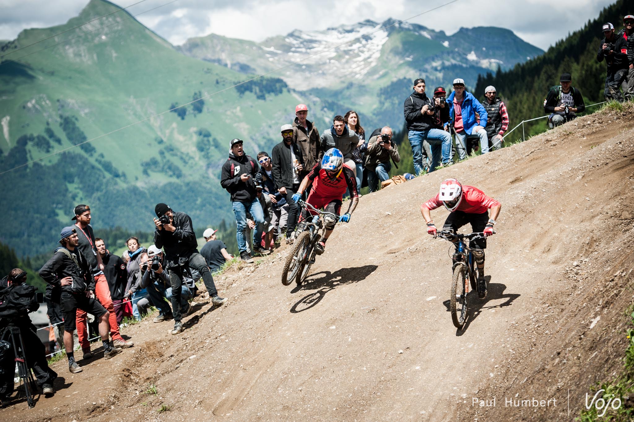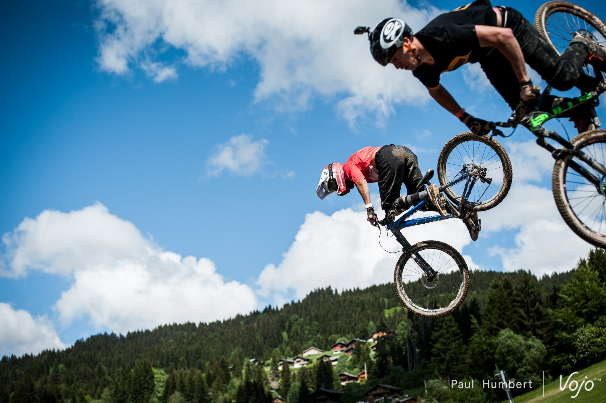 Bienvenue aux Gets dans les Portes du Soleil. Le festival VTT de référence pour les disciplines gravity, c’est les Crankworx ! Pour les trois prochaines années, l’étape européenne du festival marquera un stop dans la petite station alpine. Tous les meilleurs slopestylers, dirters et descendeurs sont au rendez-vous et guettent le ciel car la météo semble ne pas vouloir faciliter la tâche des organisateurs. Les reports et les annulations se succèdent mais tout le monde est prêt à foncer au moindre rayon de soleil. Nous vous proposons aujourd’hui nos premières images sur place et les résultats du Dual Slalom – Speed & Style :