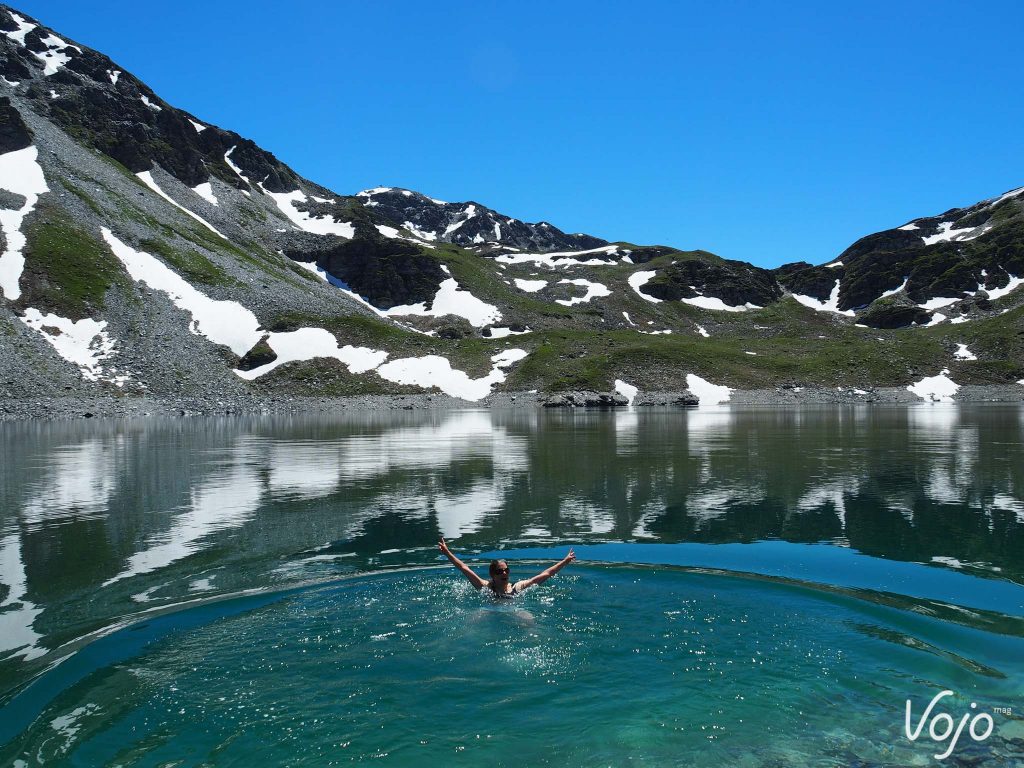 Il ne nous faut pas plus de cinq minutes de descente pour arriver au lac. A peine le temps d’arriver, qu’Emilie lance le défi de sauter à l’eau. Je vous laisse imaginer la température. Les trois courageuses qui se sont baignées l’ont estimée à une quinzaine de degrés !