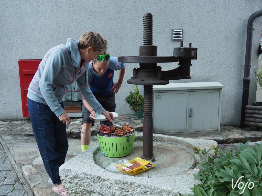 Une petite marche du parking au gîte nous permet de visiter des ruelles aux décorations très originales. Les maisons sont petites et toute en pierre. C’est dans une atmosphère relaxante que nous dégustons la bière locale et que nous préparons le barbecue. Le debriefing de la journée et les expériences de chacune nous occupent pendant le temps du repas. Le sommeil ne se fait pas prier !