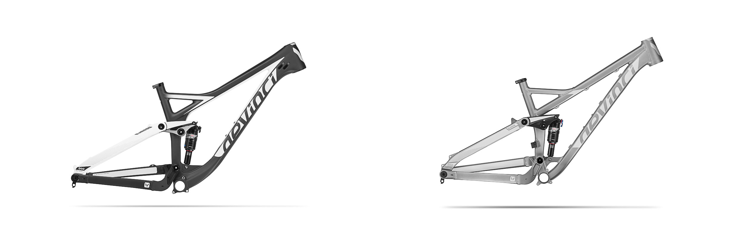 Le cadre est décliné en version aluminium et carbone. Sur ce dernier, le triangle avant est en carbone, comme les haubans, mais les bases et la biellette restent dans tous les cas en alu. Les prix en vélo complet débutent à 2819€ pour le DeVinci Django S en 2×10 (RockShox Sektor, montage Deore/X5, freins Shimano). Le premier montage carbone est le RS à 4129€ (Pike, groupe Sram GX), alors que le haut de gamme monte à 6199€ en carbone et 5549€ en alu (Pike, groupe XT, roues DT X1700, Reverb Stealth).