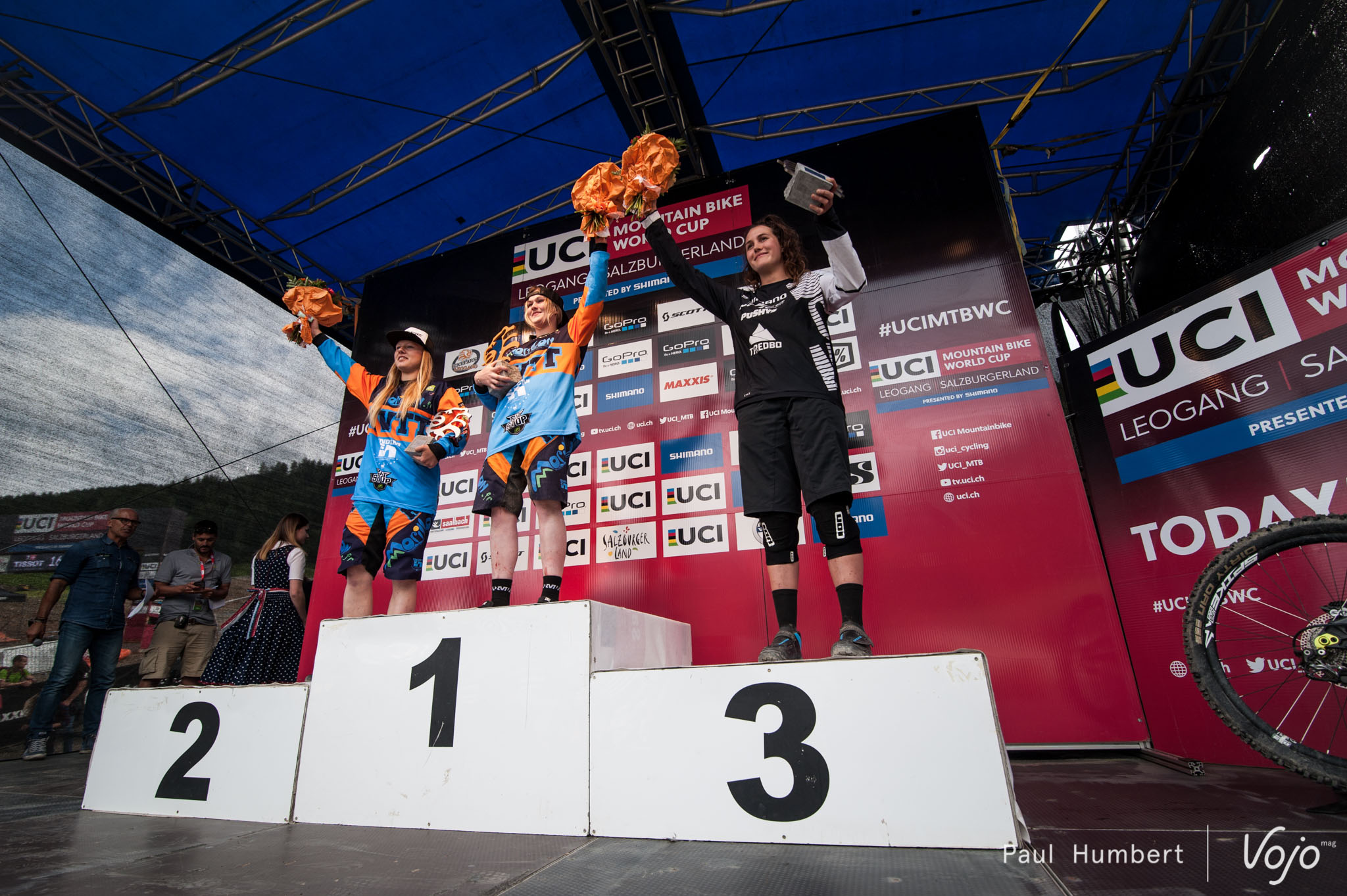 Rachel Atherton s’impose (presque) sans surprise et son pilotage la place un cran au dessus des autres compétitrices. Elle remporte ici sa 30ème victoire en coupe du Monde. Sur le bas du tracé, elle saute la table d’arrivée et frôle la ligne des 25 mètres. Elles sont deux à avoir réussi à passer ce saut en entier. La seconde est Tannée Seagrave et c’est elle qui prend la deuxième place devant Miranda Miller, Tracey Hannah et Manon Carpenter. Morgane Charre chute et Marine Caribou est la première française, elle est 7ème.
