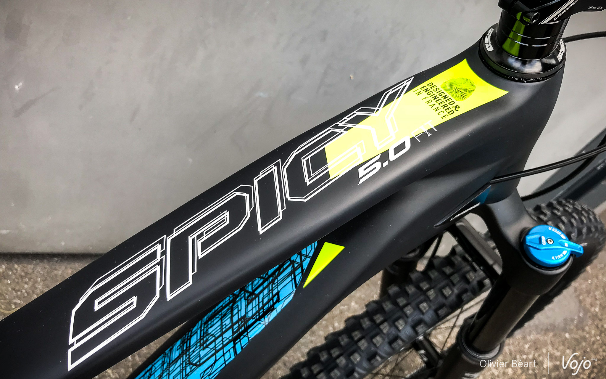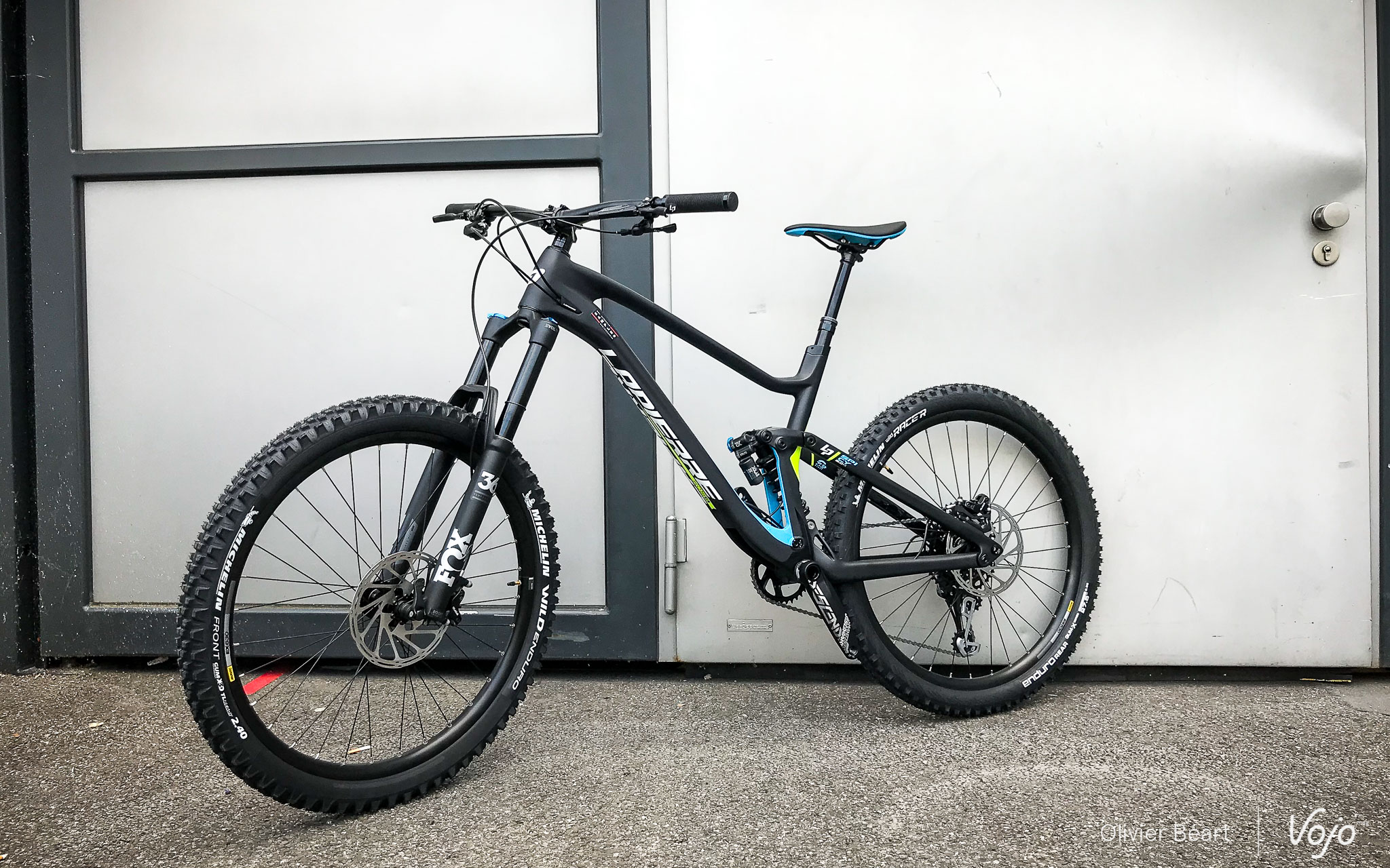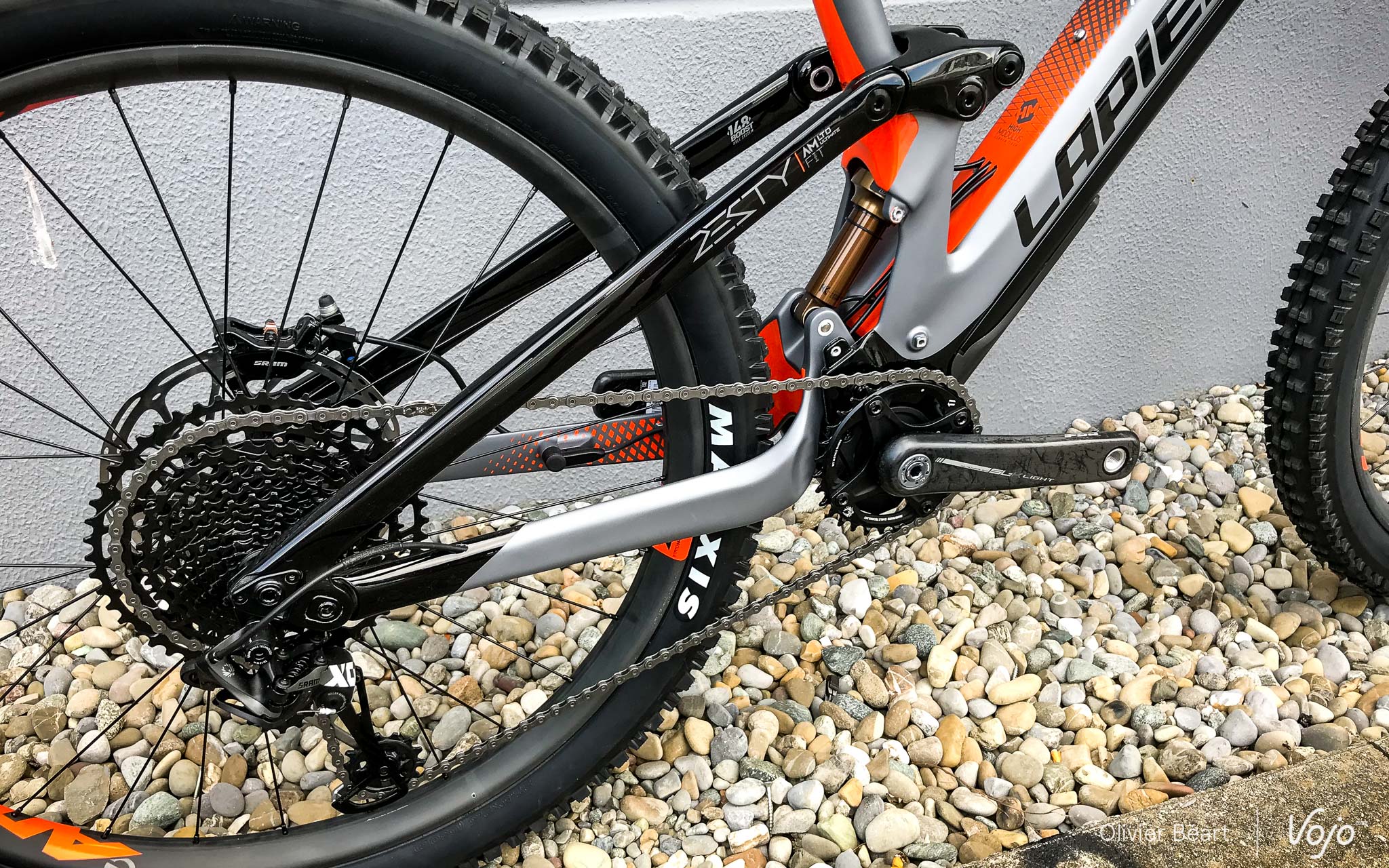 Le Lapierre Spicy est clairement plus fait pour un usage enduro et sera utilisé par Adrien Dailly à son retour à la compétition. Il a un débattement de 160mm en 29 et 170 en 27,5. Il sera prévu pour recevoir des amortisseurs à ressort, comme le DHX2 présent sur ce modèle.