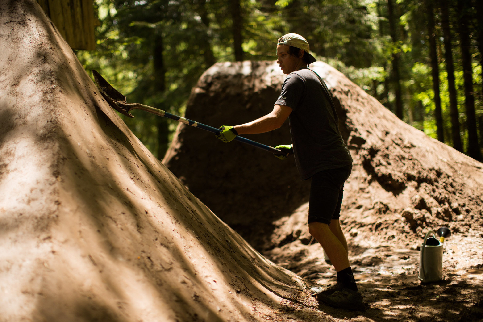 Le projet aura duré 20 mois en tout ! Ça a été plus ou moins intense, et on a dû ajuster le timing. Au final, le projet était super long et dur. L’été dernier, la pluie ne nous a pas aidés. Les drains que nous avions creusés se refermaient, et cet été, c’était l’inverse. Le sol était tellement dur qu’il était difficile d’avancer. Heureusement, quelques sources nous ont permis d’apporter un peu d’humidité et on a pu filmer sur des jumps bien propres. C’était une belle mission !