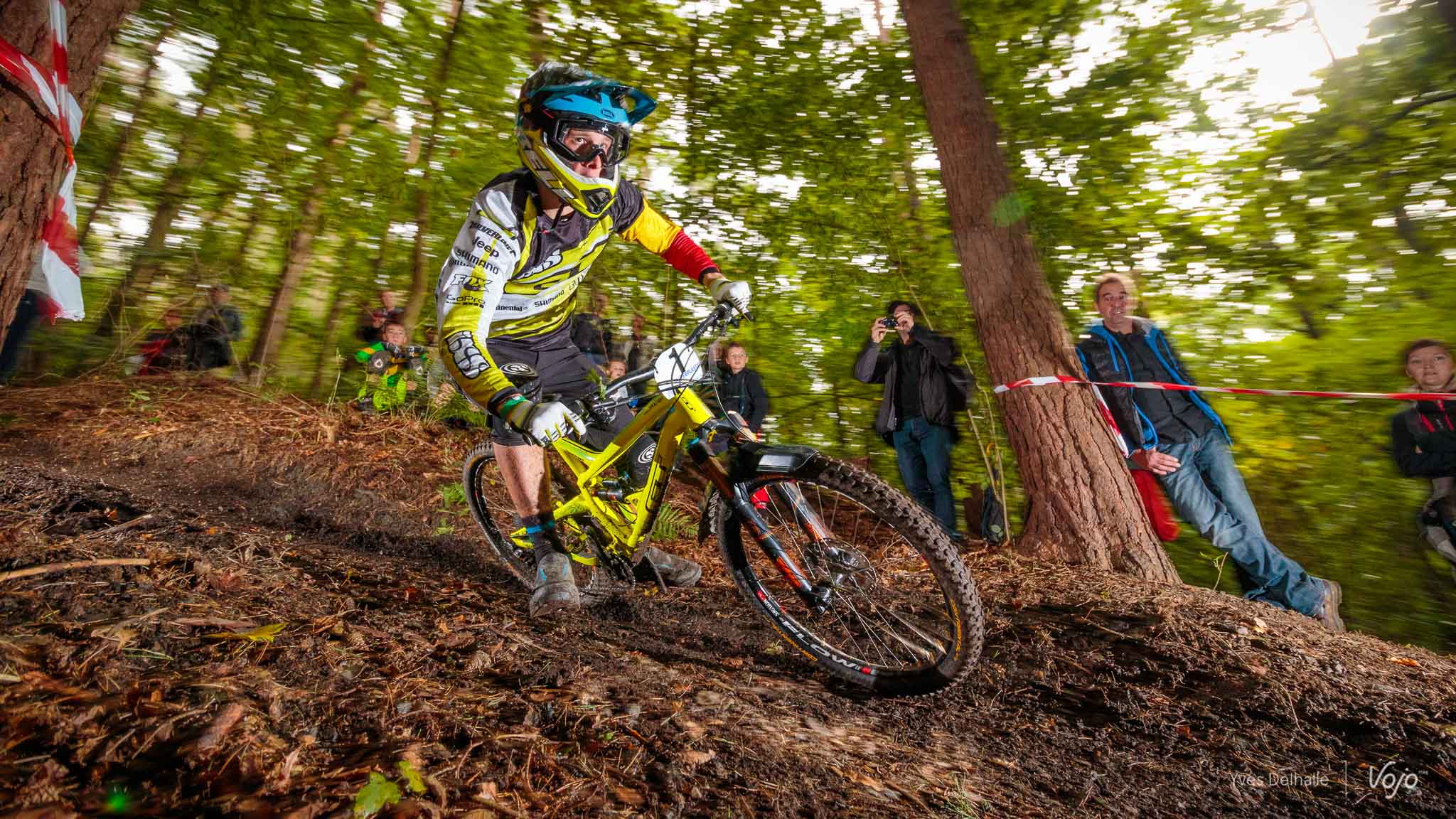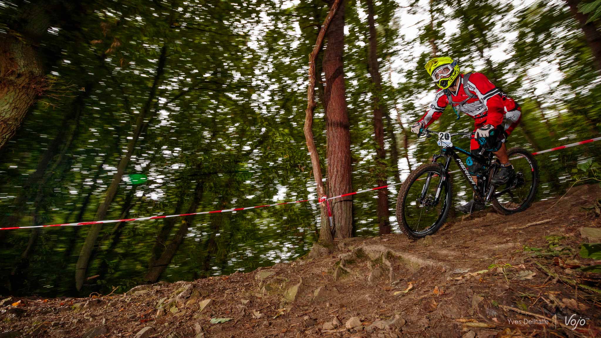 Vient ensuite Laurent Georges, qui pointe à la 5e place scratch. Affûté comme jamais en vue des championnats du Monde de DH Masters à Vallnord (disputés une semaine avant les Worlds Elite) où il a hélas été malchanceux (crevaison), Laurent Georges remporte le titre de champion de Wallonie M2 en surclassement.
