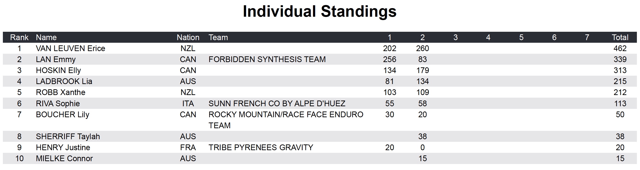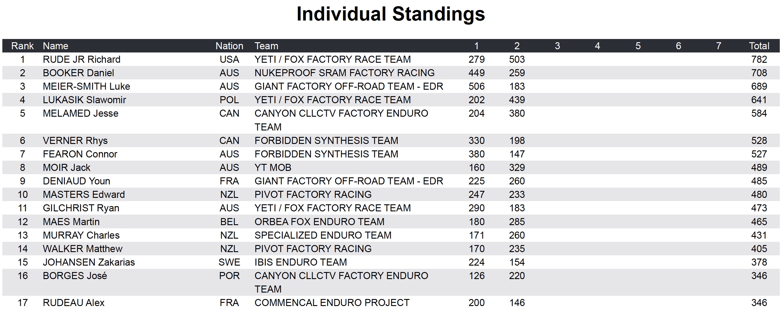 Sixième de ce classement provisoire, le champion en titre Jesse Melamed n’est bien entendu par encore hors course pour le doublé, mais le Canadien a déjà pratiquement 200 points de retard à combler sur le premier.