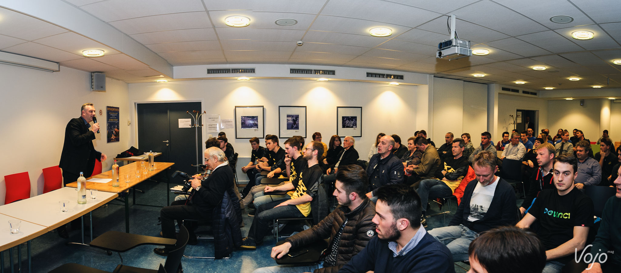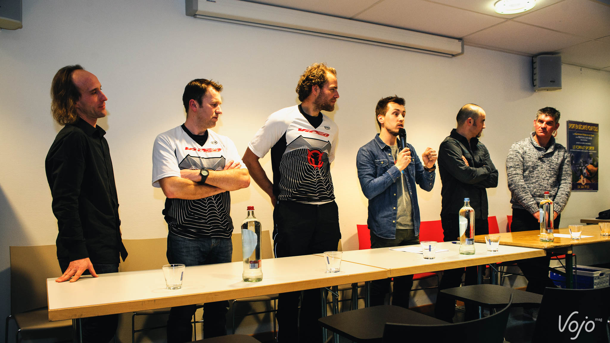 C’est un véritable événement qui a eu lieu ce jeudi soir du côté de Liège : A l’initiative de Stéphane Ibens, lui-même responsable de deux structures, tous les principaux teams enduro et DH belges, ainsi que tous les organisateurs du pays se sont réunis pour présenter ensemble leurs structures et leurs courses 2016 ! Concurrents sur les pistes mais souvent amis en dehors, ils ont ainsi montré une image particulièrement forte et dynamique de la scène gravity belge. Vojo y était !