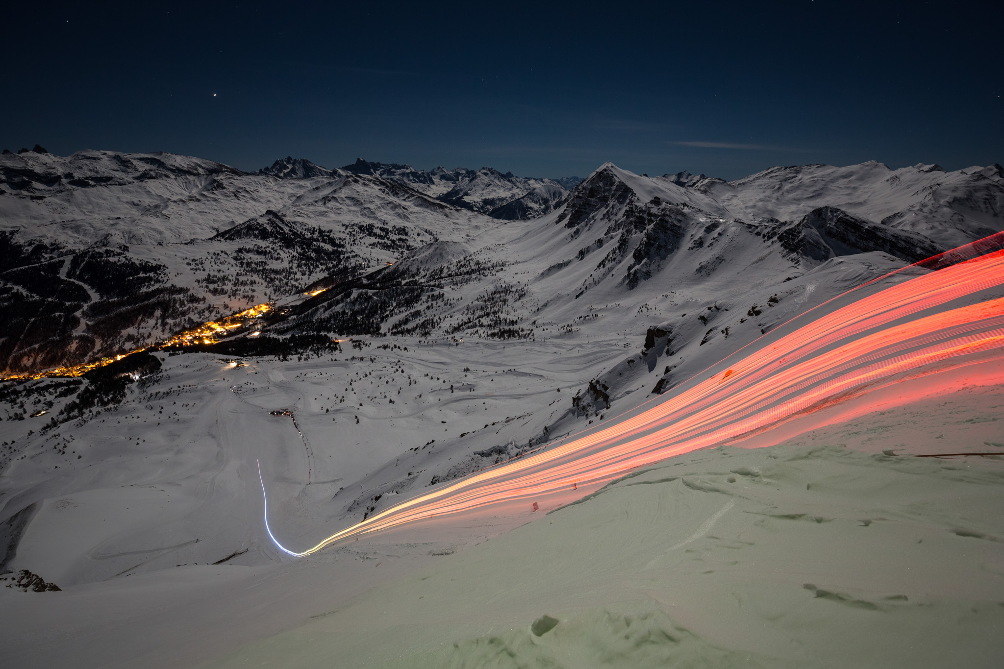 C’est à la seule lumière de la pleine lune que toute l’équipe oeuvrant autour d’Eric Barone a organisé cette descente. Mêlant performance humaine et performance artistique, elle a pu mettre en valeur le travail des multiples acteurs présents sur place en scénarisant tout l’évènement. Le « baron rouge » était cette fois habillé tout de blanc et c’est dans cette combinaison inédite pour lui qu’il a laissé sa marque à travers la montage.