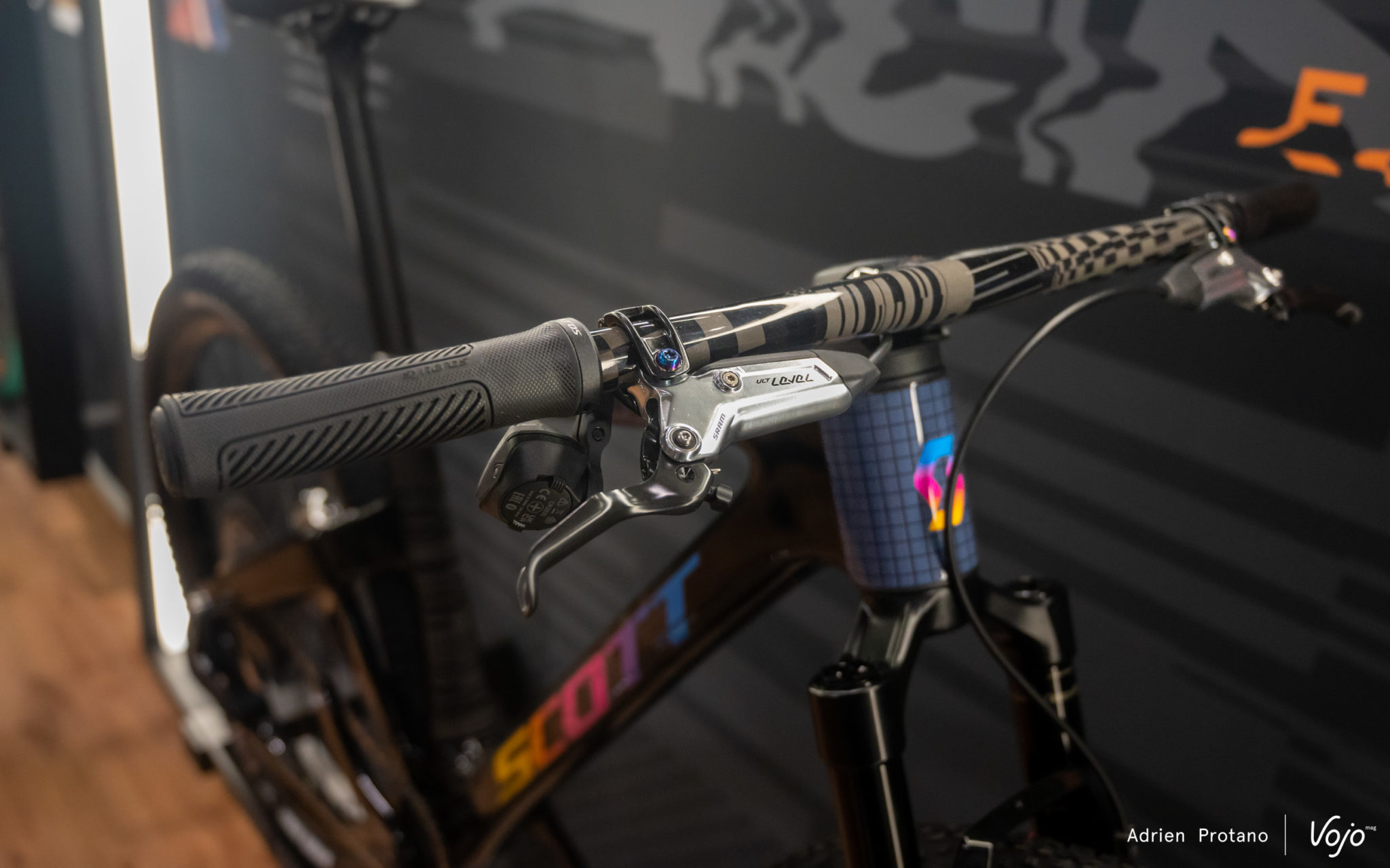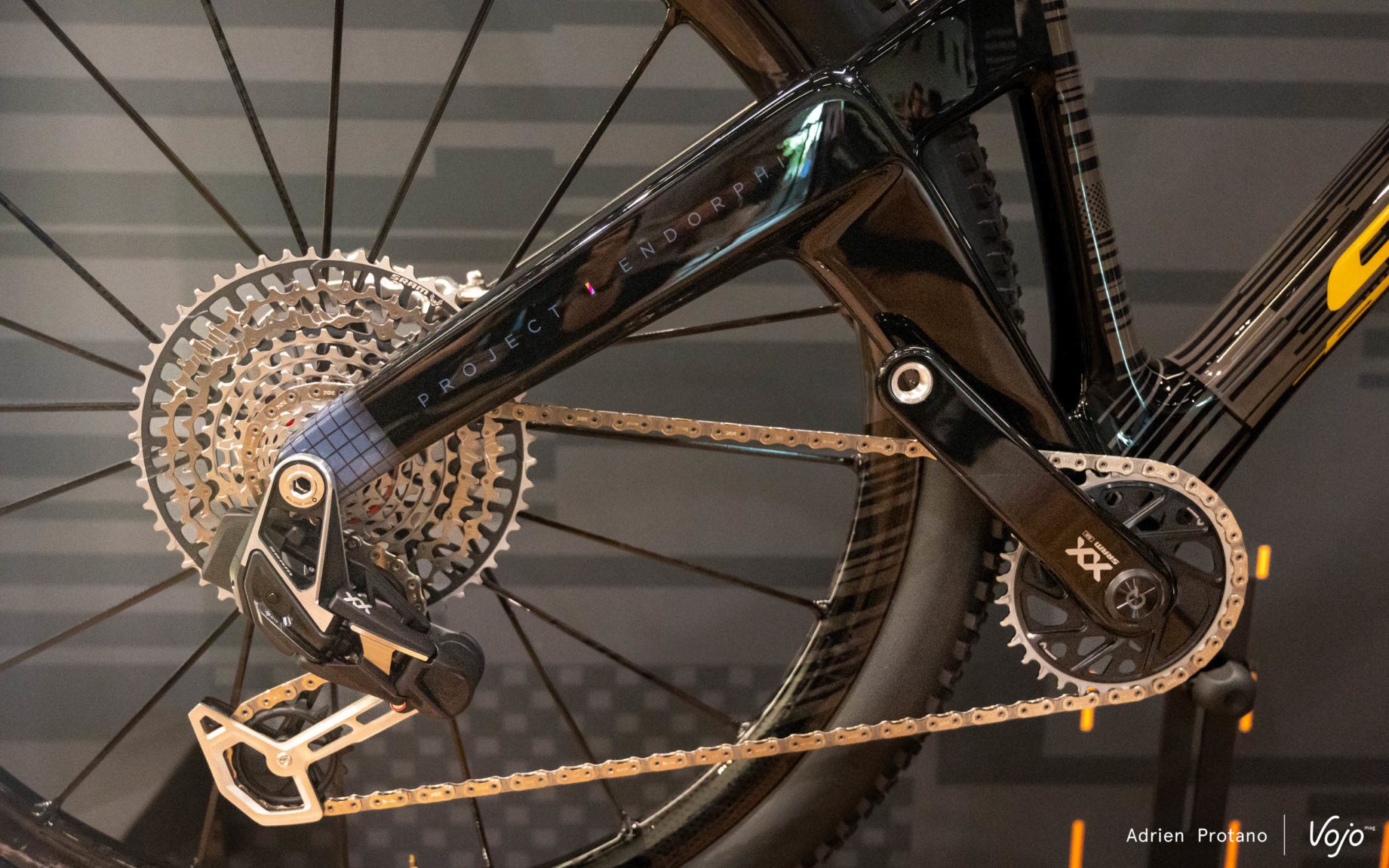 Pour le reste, on retrouve les derniers composants du moment avec la dernière transmission Sram XX T-Type, accompagnée des freins Sram Level et de la SID Ultimate dernière génération en 100 mm de débattement. Côté roues, on peut apercevoir les fameuses Silverton SL en carbone dans une livrée spécialement personnalisée pour cet Endorphin 2023.
