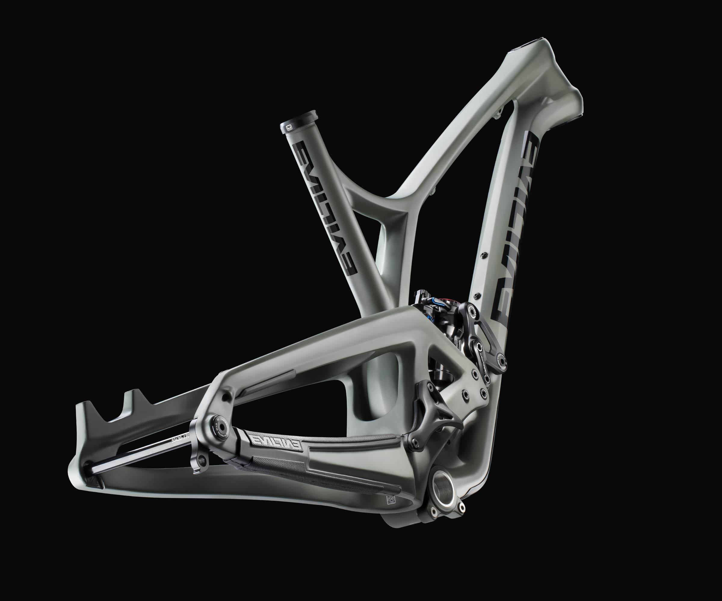 Pour augmenter son potentiel, le nouveau Evil Following passe au standard métrique avec fixation de type Trunion (pas d’axe qui traverse l’amortisseur et les pas de vis sont directement sur le corps de ce dernier) ce qui lui permet désormais d’accepter un amortisseur avec réservoir externe comme le RockShox Super Deluxe Air. Notez aussi le nouveau design de l’anti-déraillement intégré.