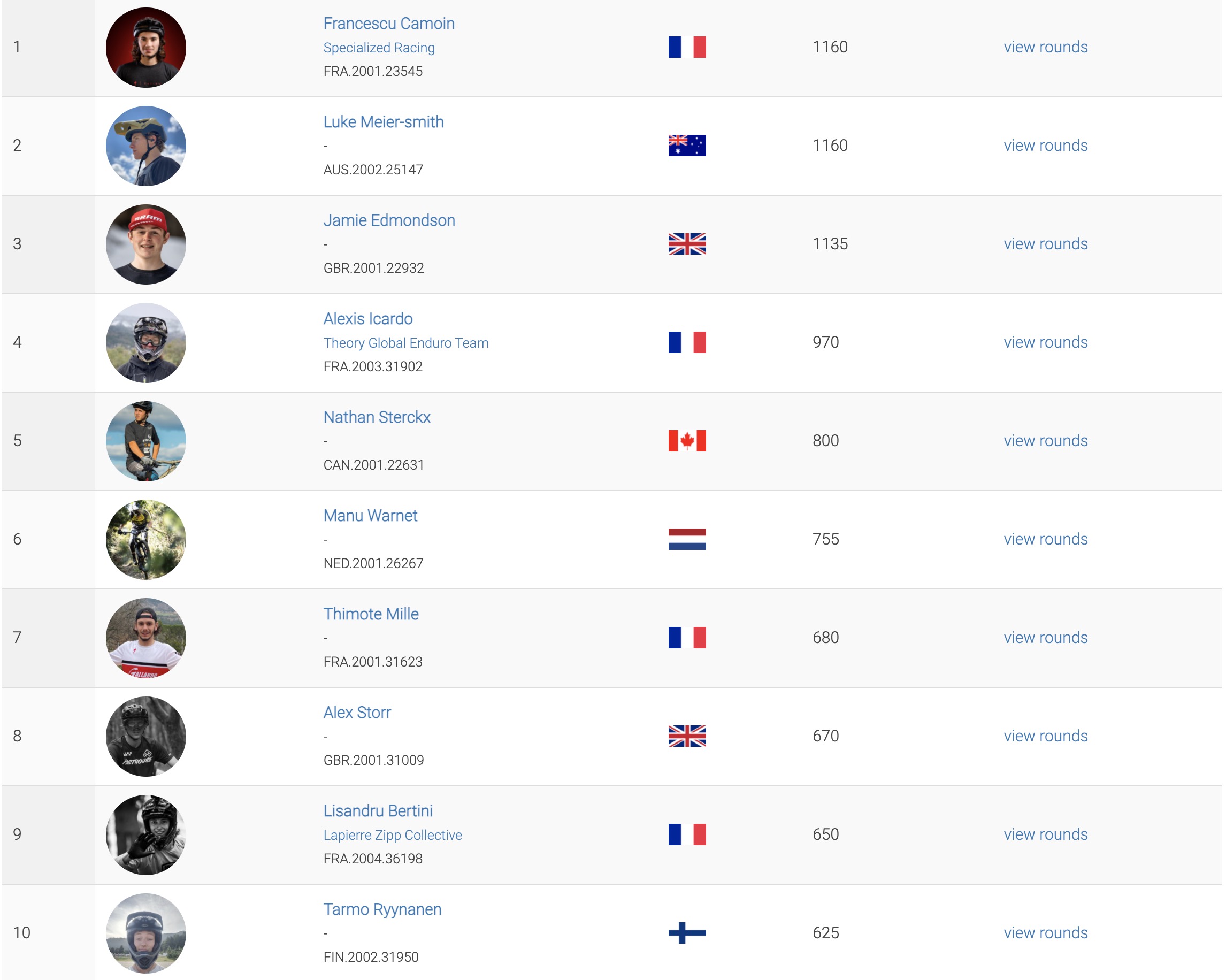 En l’absence de Luke Meier-Smith et Jamie Edmondson, Francescu Camoin en a profité pour prendre les commandes de la catégorie U21. Mais il est à égalité de points avec Meier-Smith, et Edmondson n’est qu’à 25 unités !