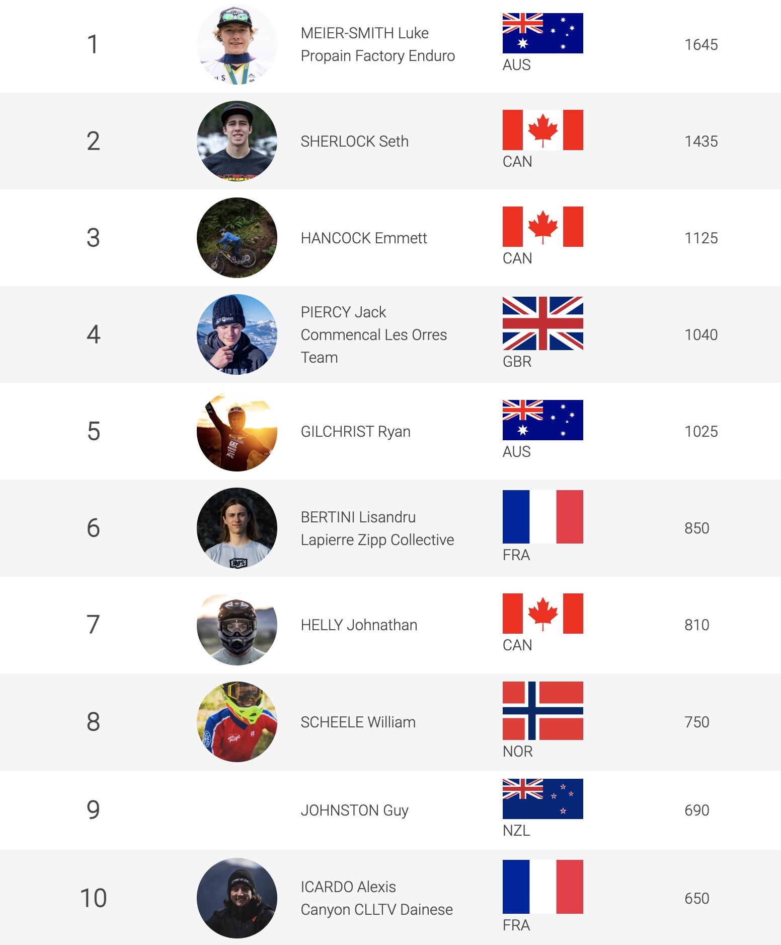Chez les U21, Luke Meier-Smith ne s’est aligné que sur 5 des 8 manches… mais il les a toutes remportées ! Sacré champion avant même la fin de la saison, il devance deux Canadiens au classement : Seth Sherlock et Emmett Hancock.