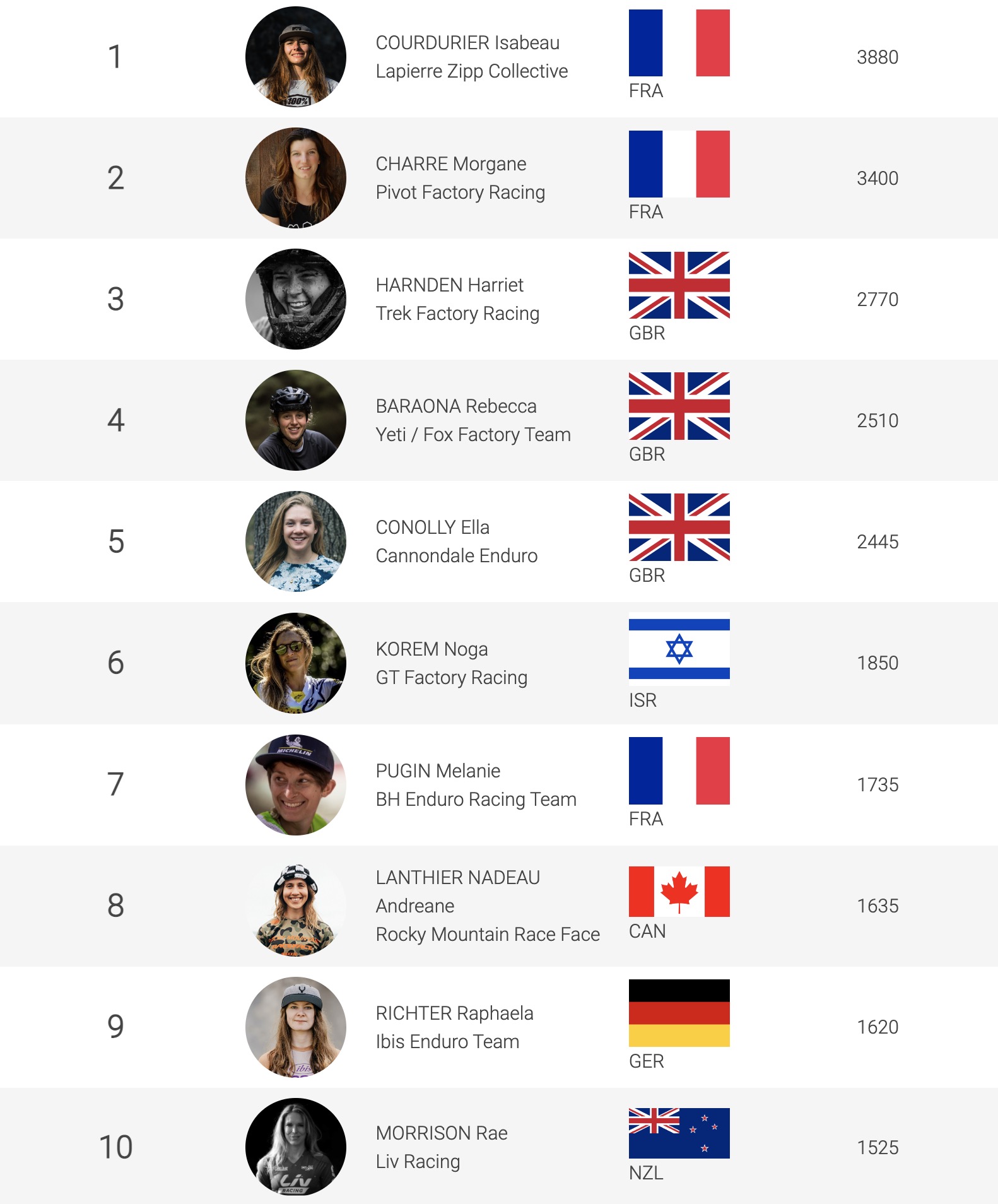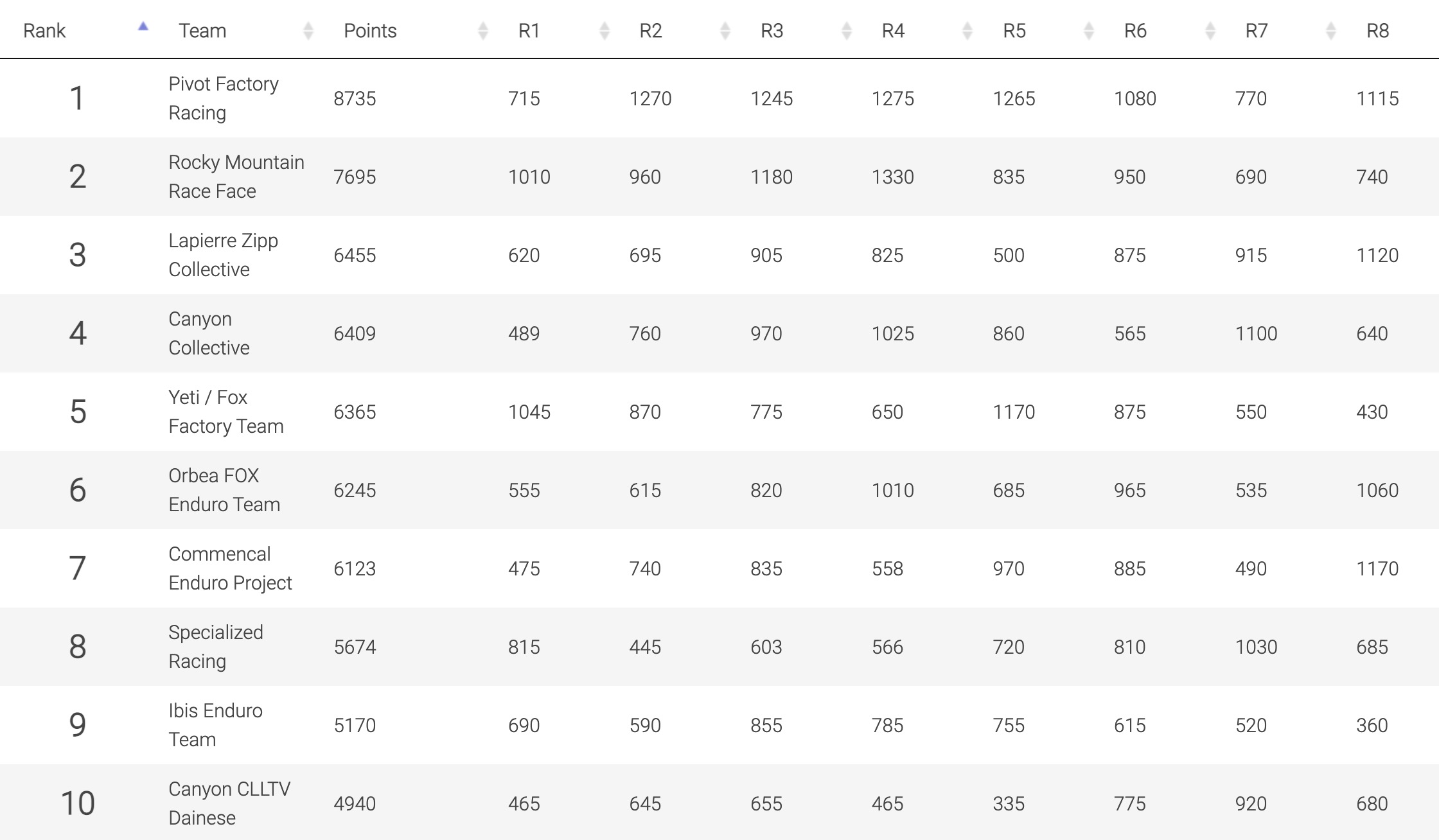 Quant au classement par équipe, il est remporté haut la main par le team Pivot Factory Racing de Morgane Charre, Matt Walker, Ed Masters et leurs acolytes, devant le team Rocky Mountain Race Face de Jesse Melamed, Andréane Lanthier-Nadeau et Remi Gauvin, et le team Lapierre Zipp Collective d’Isabeau Courdurier, Adrien Dailly, Lisandru Bertini et Cédric Carrez.