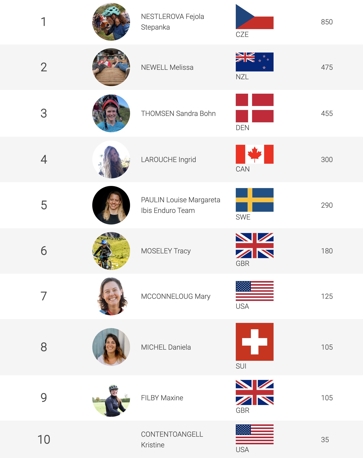 Au niveau des Françaises, on notera aussi la 17e place de Julie Duvert et la 21e de Morgane Jonnier, alors qu’Estelle Charles termine 23e après n’avoir disputé qu’une seule manche.