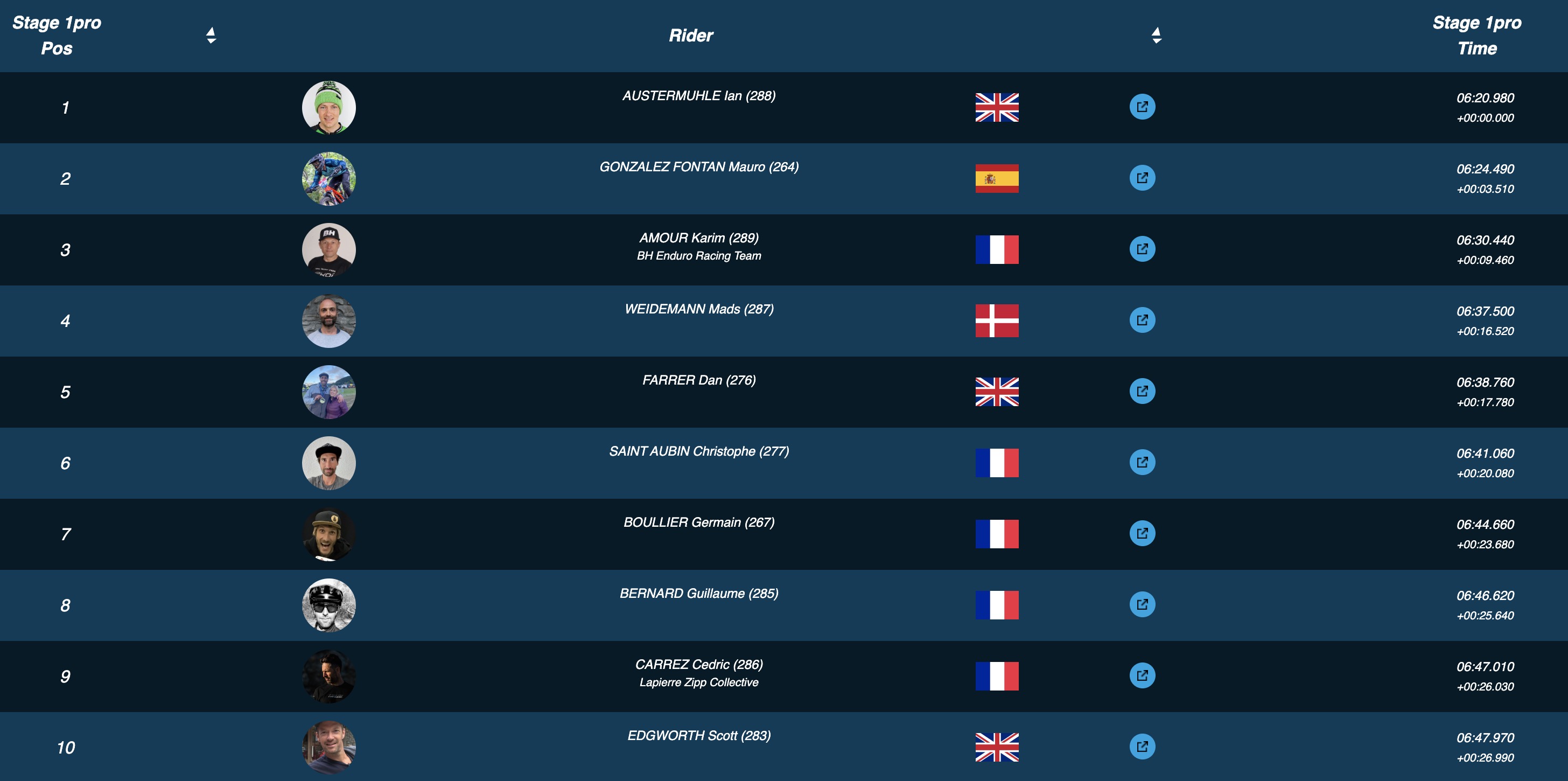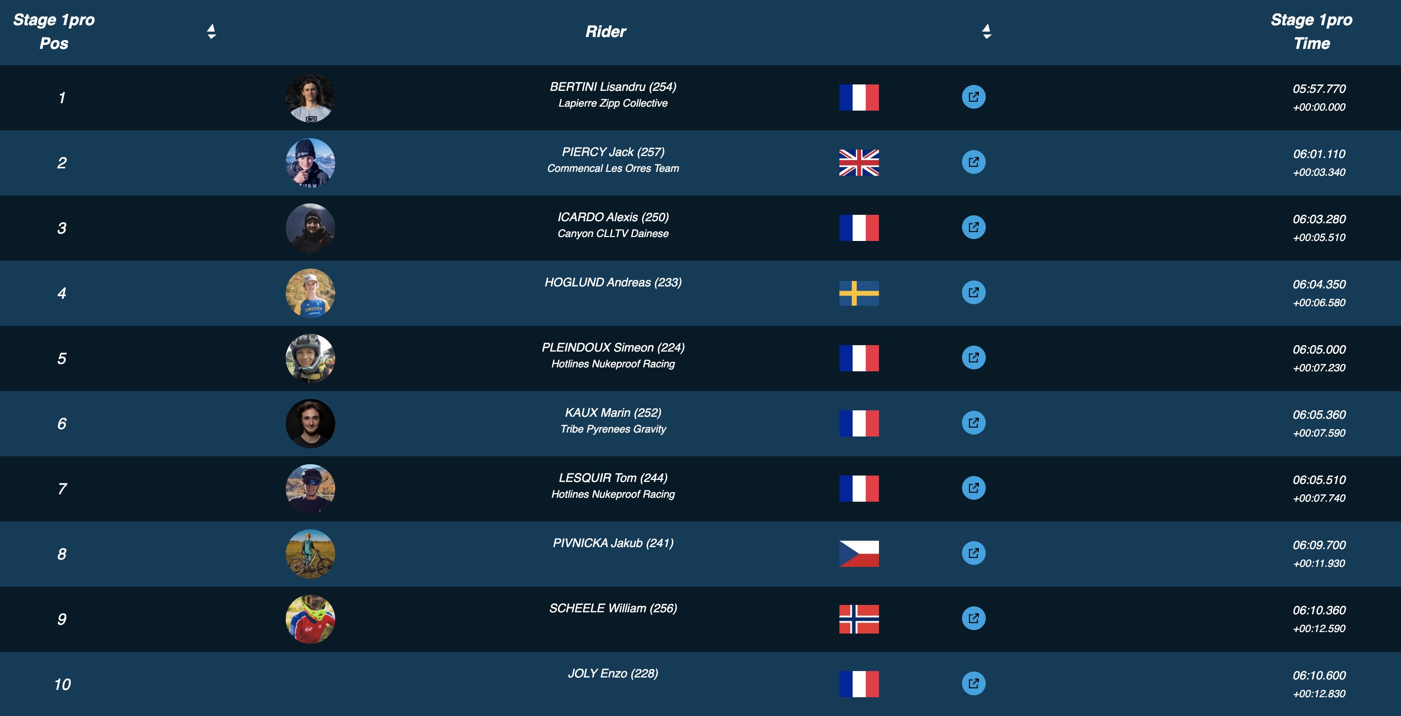Plus loin dans le classement, on notera la 18e place de Dimitri Tordo, la 19e d’Irénée Menjou, la 20e d’Adrien Dailly, ou encore la 113e de Kevin Miquel qui a perdu plus d’une minute dans cette Pro Stage.