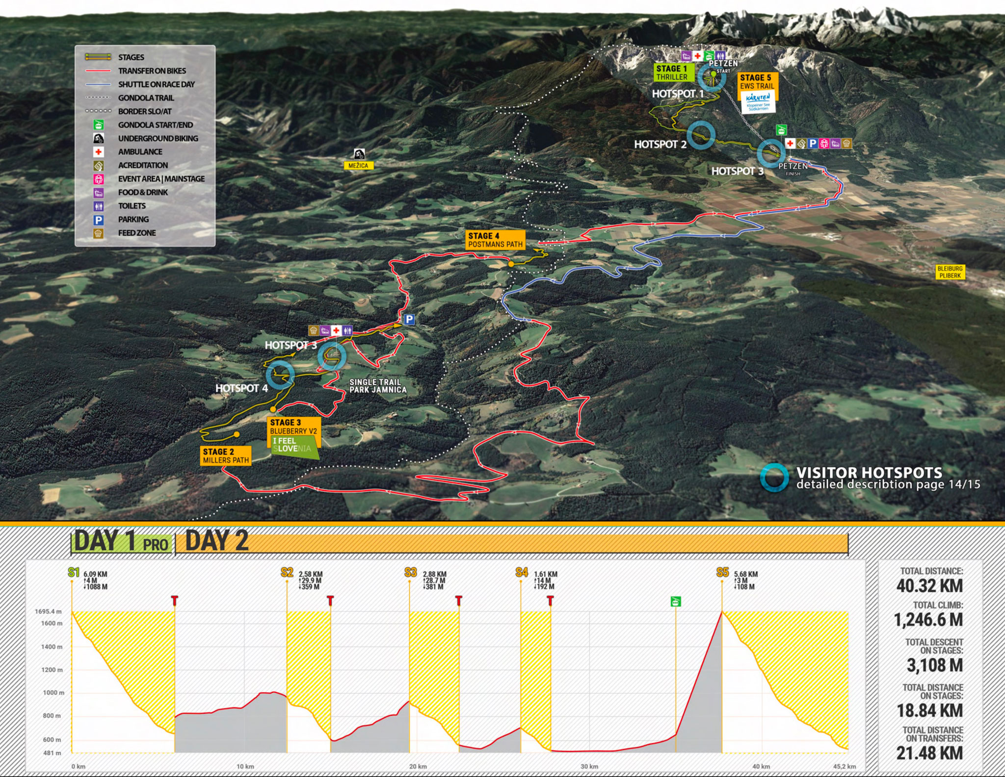 Demain, après cette belle mise en jambes, les pilotes se mesureront à quatre spéciales : les trois premières, plutôt courtes (entre 1.6 et 2.9km), sur le Single Trail Park de Jamnica, en Slovénie, avant de revenir en Autriche pour l’ultime spéciale de la course (SP5), un autre gros morceau de 5 km et demi tracé sur le bikepark de Petzen.