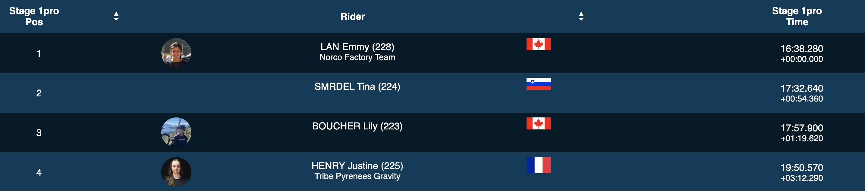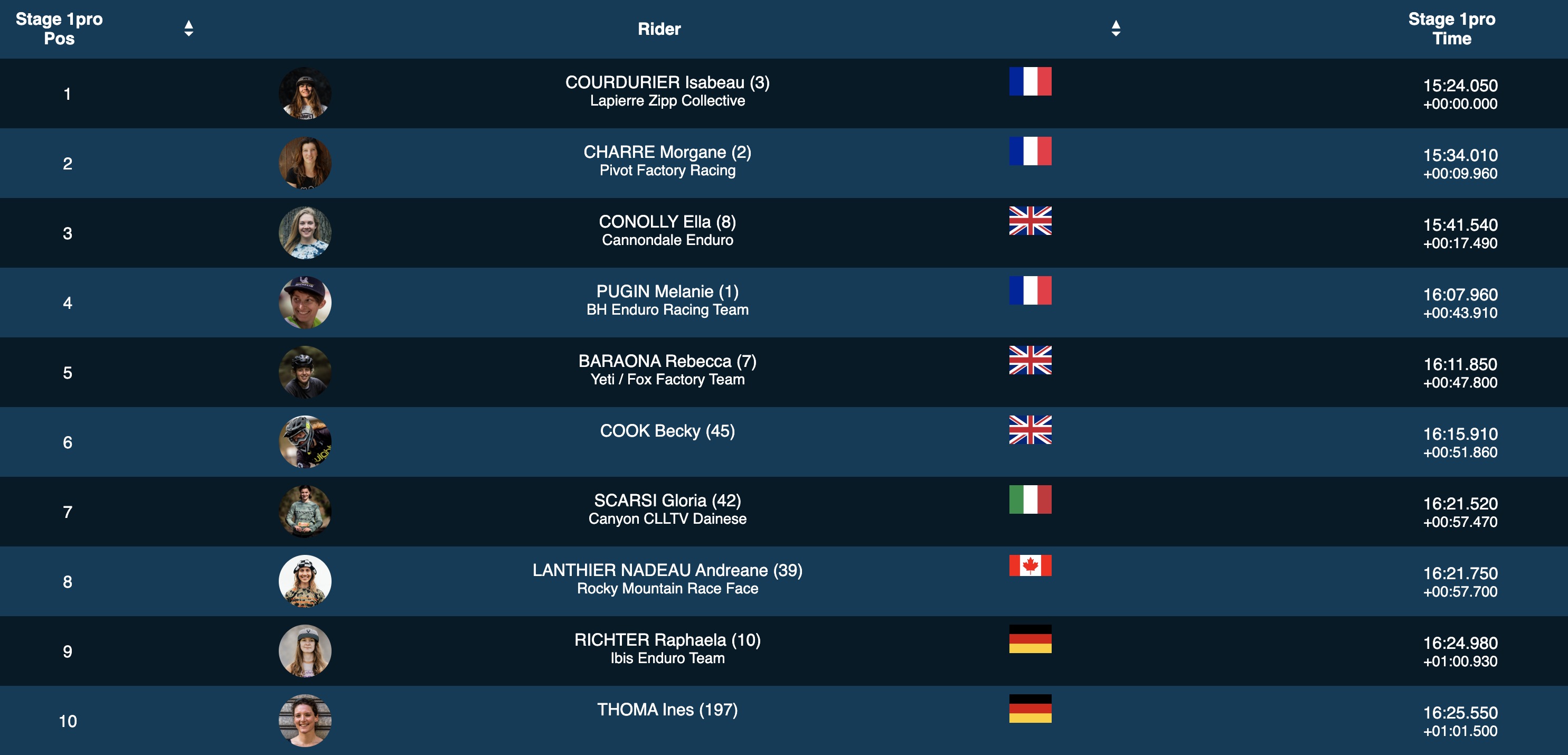 Noga Korem se classe 13e de cette Pro Stage, Morgane Jonnier 16e, Julie Duvert 17e et Katy Winton seulement 24e. Harriet Harnden, elle, termine bonne dernière et perd plus de 7 minutes et demie suite à un problème mécanique. Un gros coup dur pour la Britannique qui avait pris la 4e place lors de la manche d’ouverture en Ecosse.