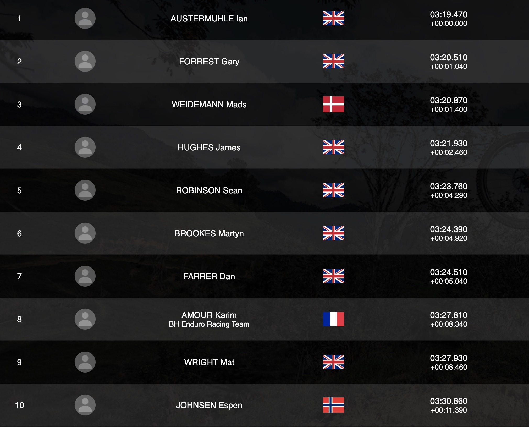 Du côté des Masters enfin, on retrouve pas moins de 7 Britanniques dans le top 10, le meilleur temps étant réalisé par Ian Austermuhle devant Gary Forrest et Mads Weidemann. Karim Amour n’est que 8e à un peu plus de 8 secondes, mais on a déjà vu le Français réaliser de belles remontées lors de la 2e journée de course.
