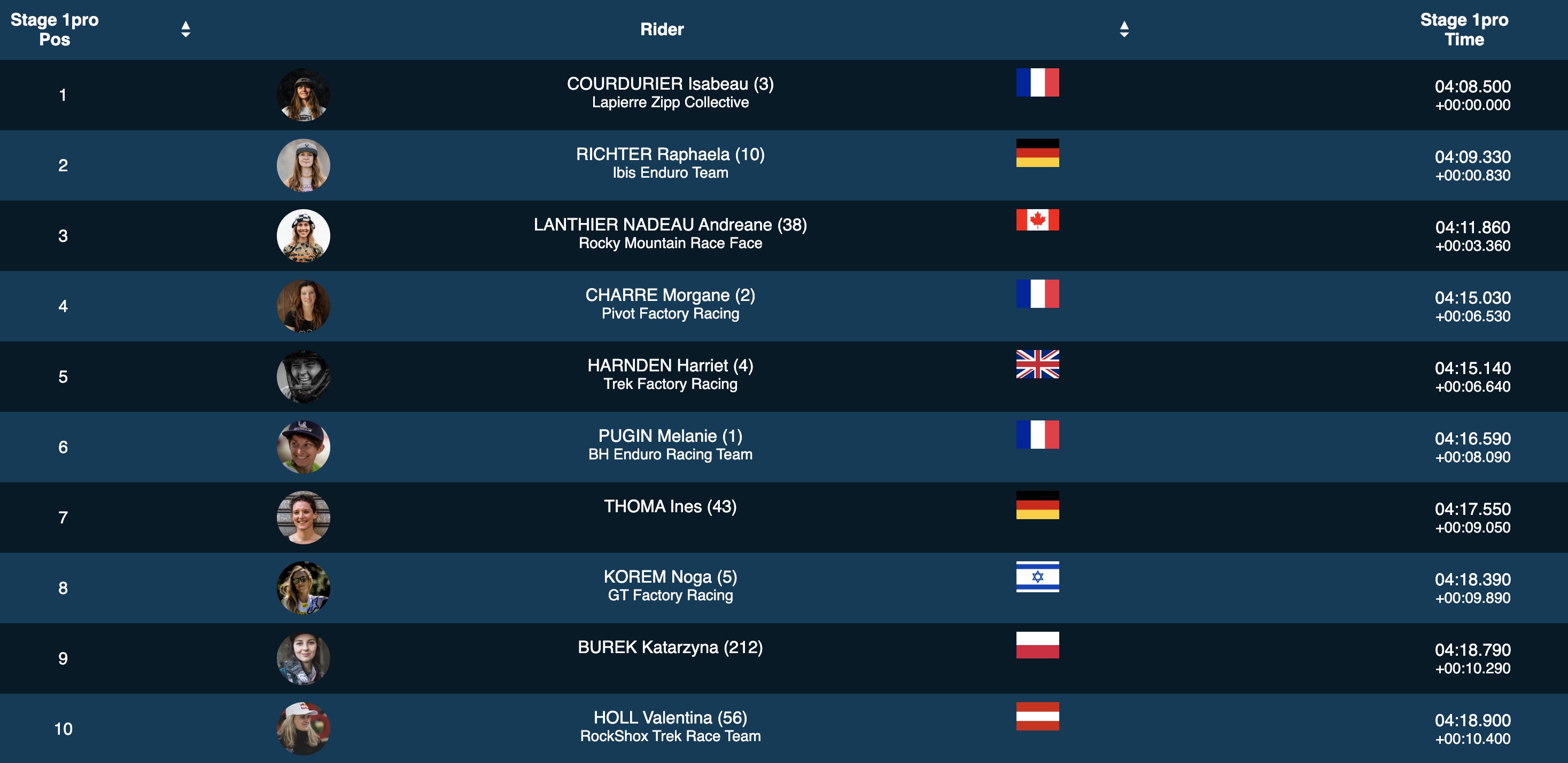 Si elle n’a pas creusé d’écart significatif, Isabeau Courdurier a en tout cas parfaitement entamé son week-end et pris un petit ascendant psychologique dès la première spéciale. Raphaela Richter est à un peu moins d’une seconde, par contre derrière de précieuses secondes ont déjà été concédées puisque Andréane Lanthier-Nadeau (3e) est à 3.360s du meilleur temps et Morgane Charre (4e) à 6 secondes et demie, tout comme Harriet Harnden (5e).