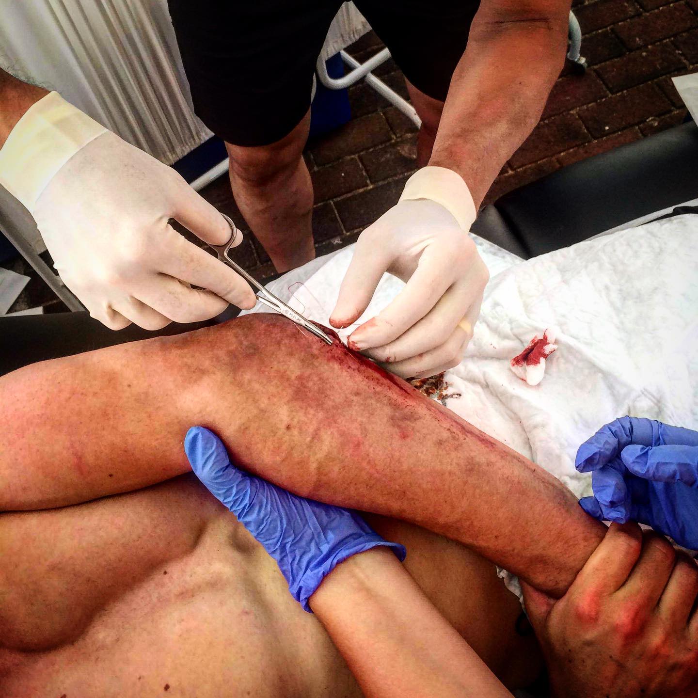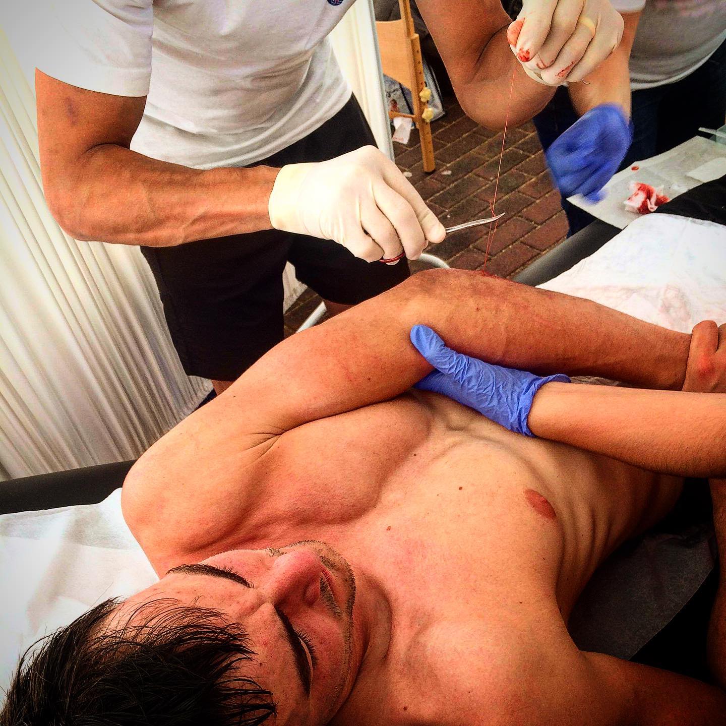 Hélas, Adrien a glissé et s’est ouvert le coude, ce qui a nécessité la pose de points de suture. A l’heure d’écrire ces lignes, il était toujours incertain pour la seconde journée de course.