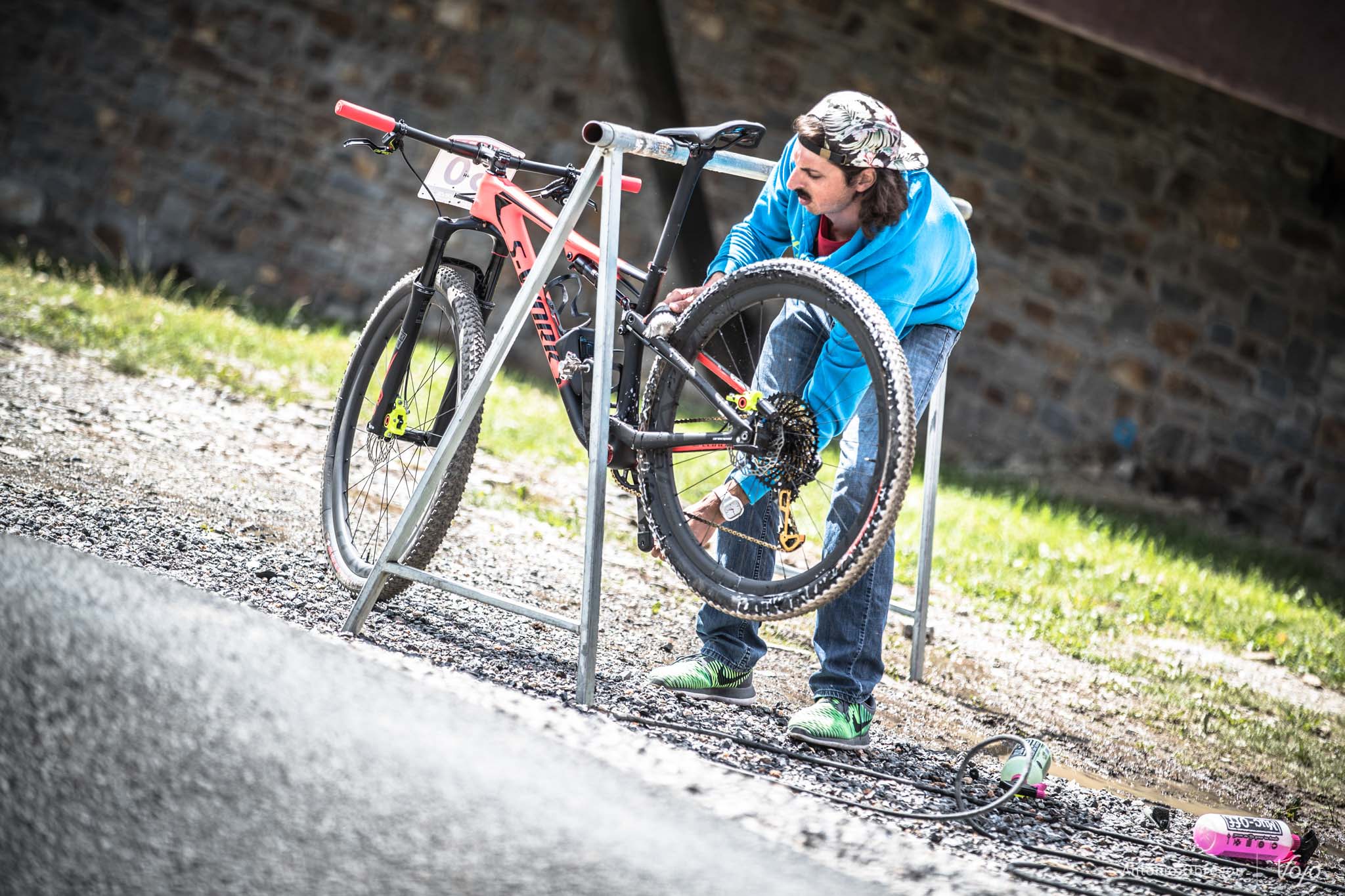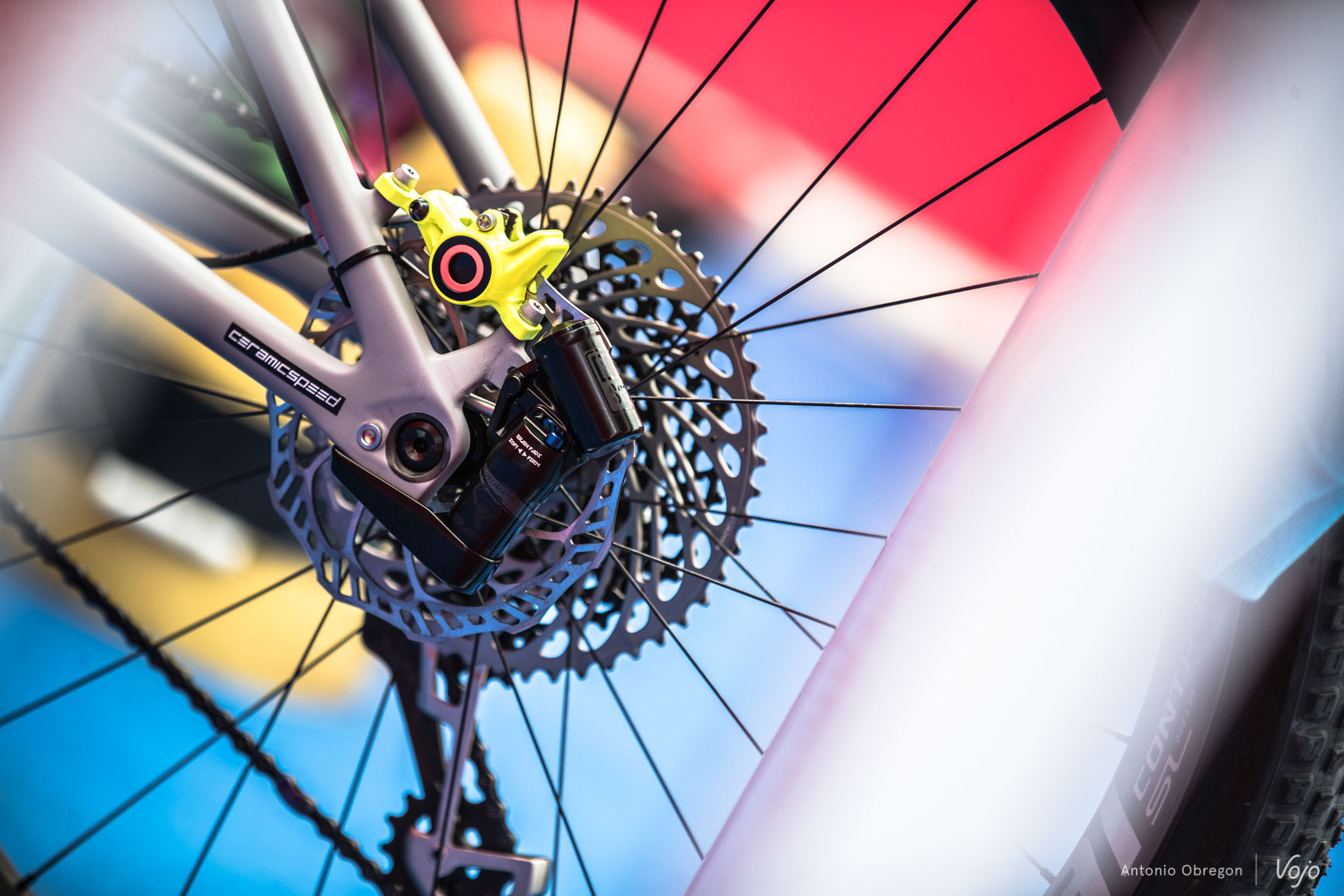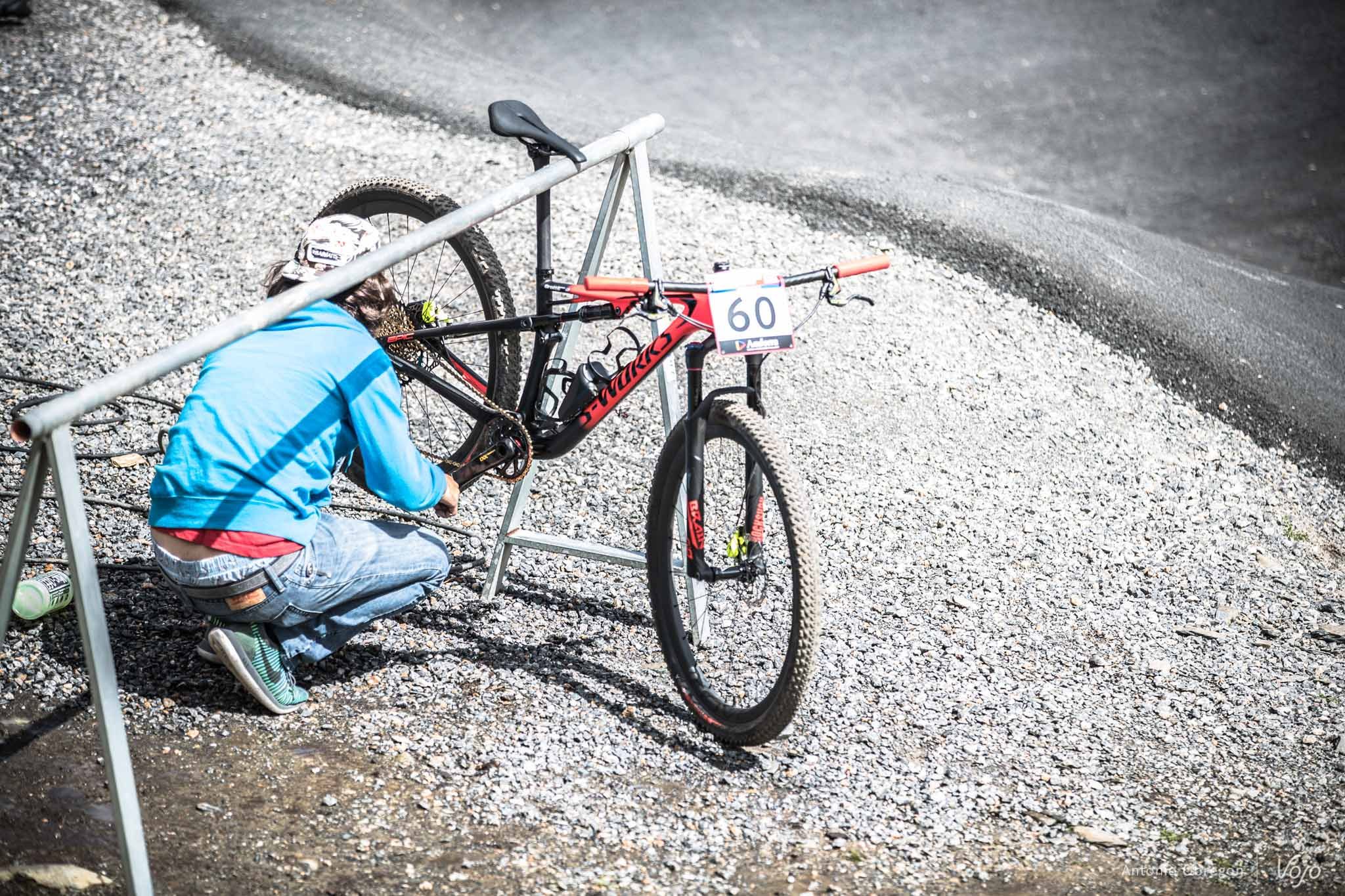 Sur ces tout premiers clichés pris discrètement depuis l’extérieur du stand du team à Vallnord, nous avons eu la surprise de constater que le Brain se situé désormais à l’arrière de l’axe de roue.
