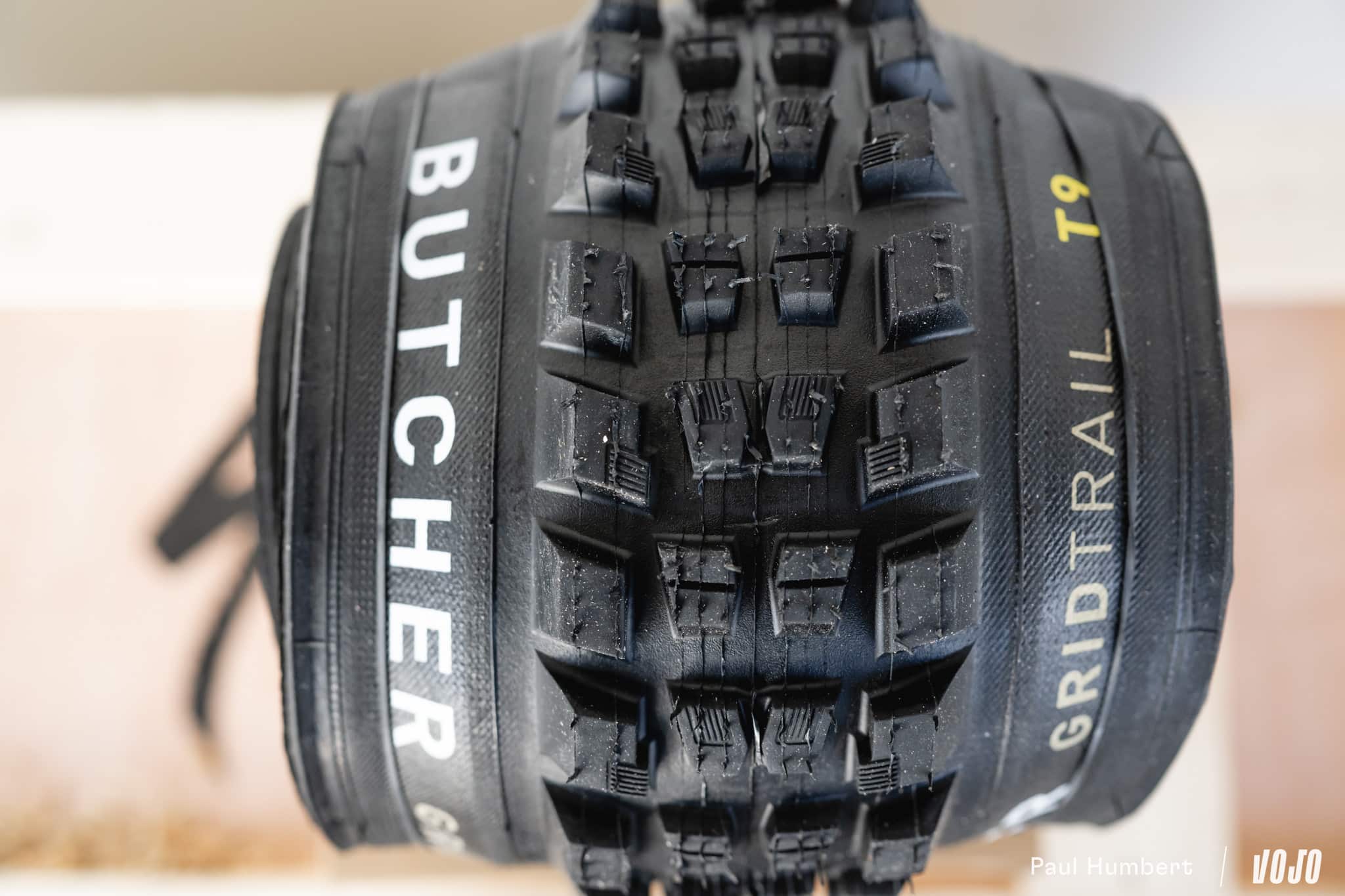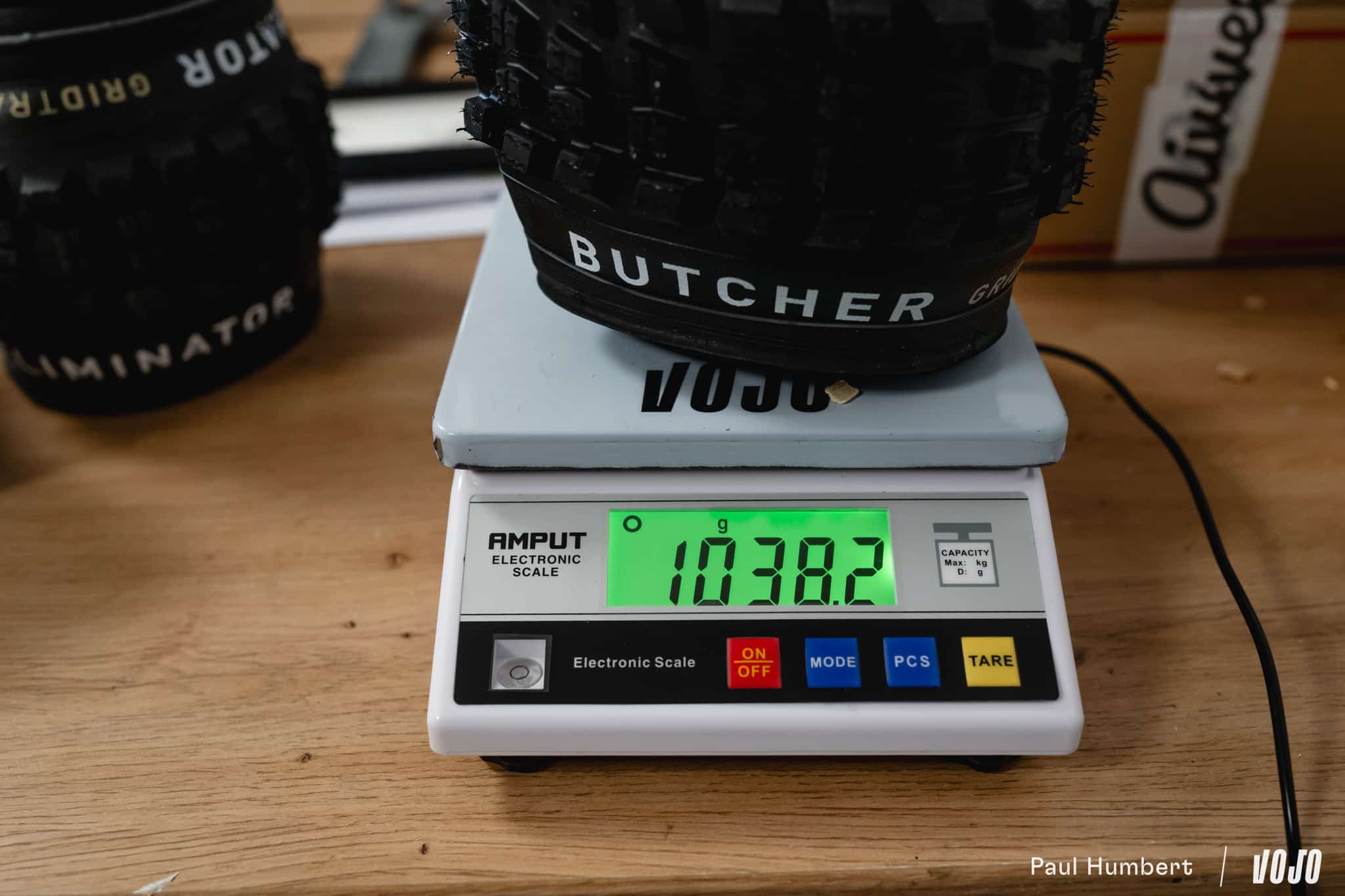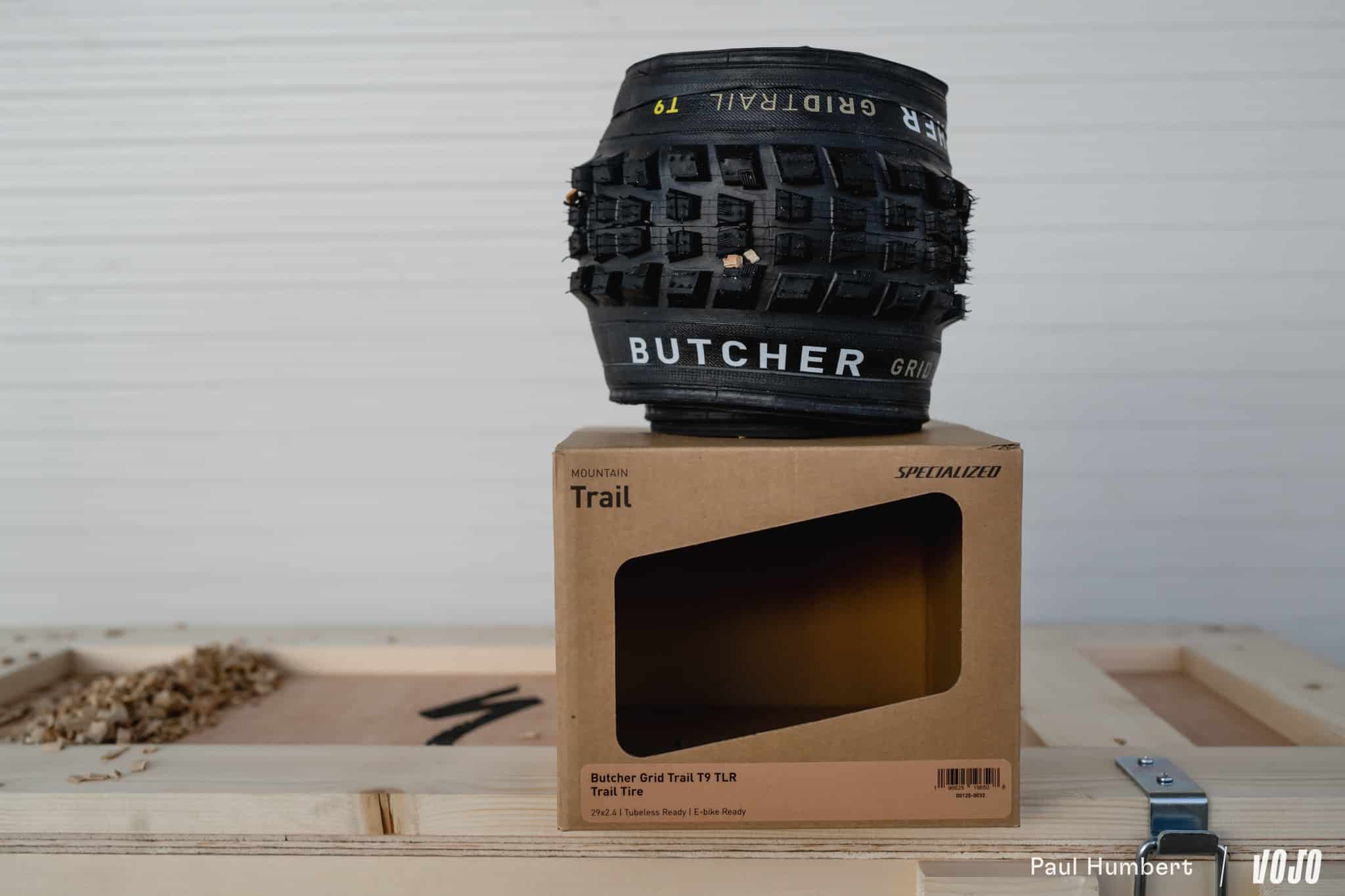 Nous avons pesé le pneu Specialized Butcher Grid Trail T9 en section 29×2,4 à 1038 g. Même positionnement pour le nouveau Butcher : 60 euros en carcasse Grid Trail, et 70 euros en carcasse Grid Gravity.