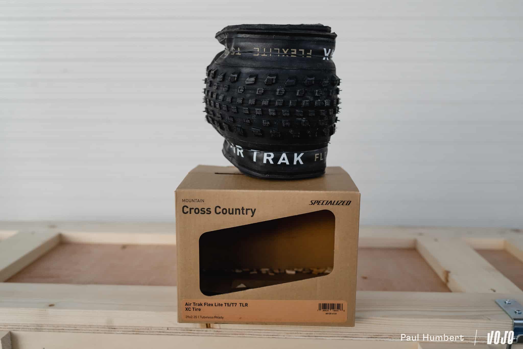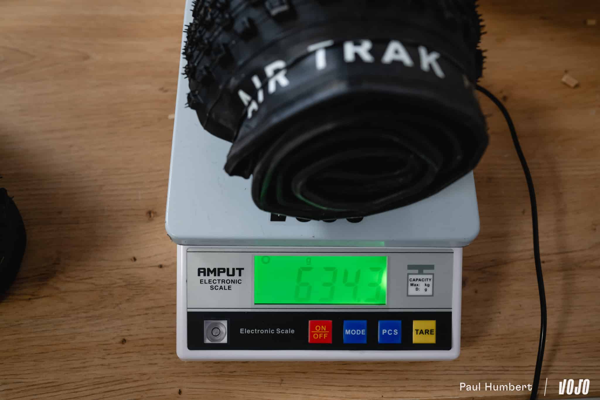 Les pneus Specialized Air Trak sont commercialisés à 50 euros. Nous avons pesé le pneu Specialized Air Trak Flex Lite T5/T7 en section 29×2,35 à 634 g (585 g annoncés).