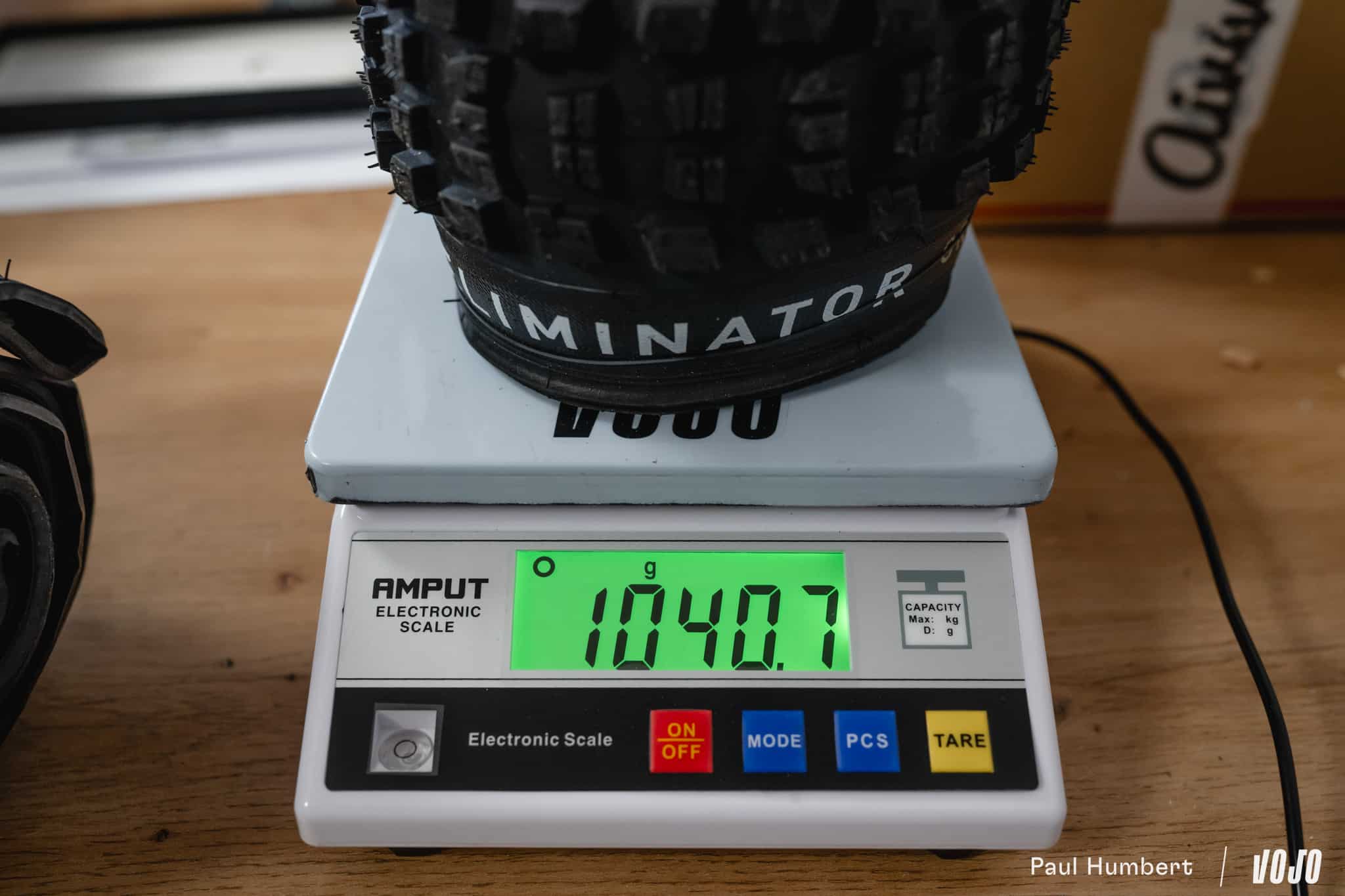 Côté tarifs, les Specialized Eliminators sont commercialisés à 60 euros en carcasse Grid Trail, et à 70 euros en carcasse Grid Gravity. Nous avons pesé le pneu Specialized Eliminator Grid Trail T7 en section 29×2,4 à 1040 g.