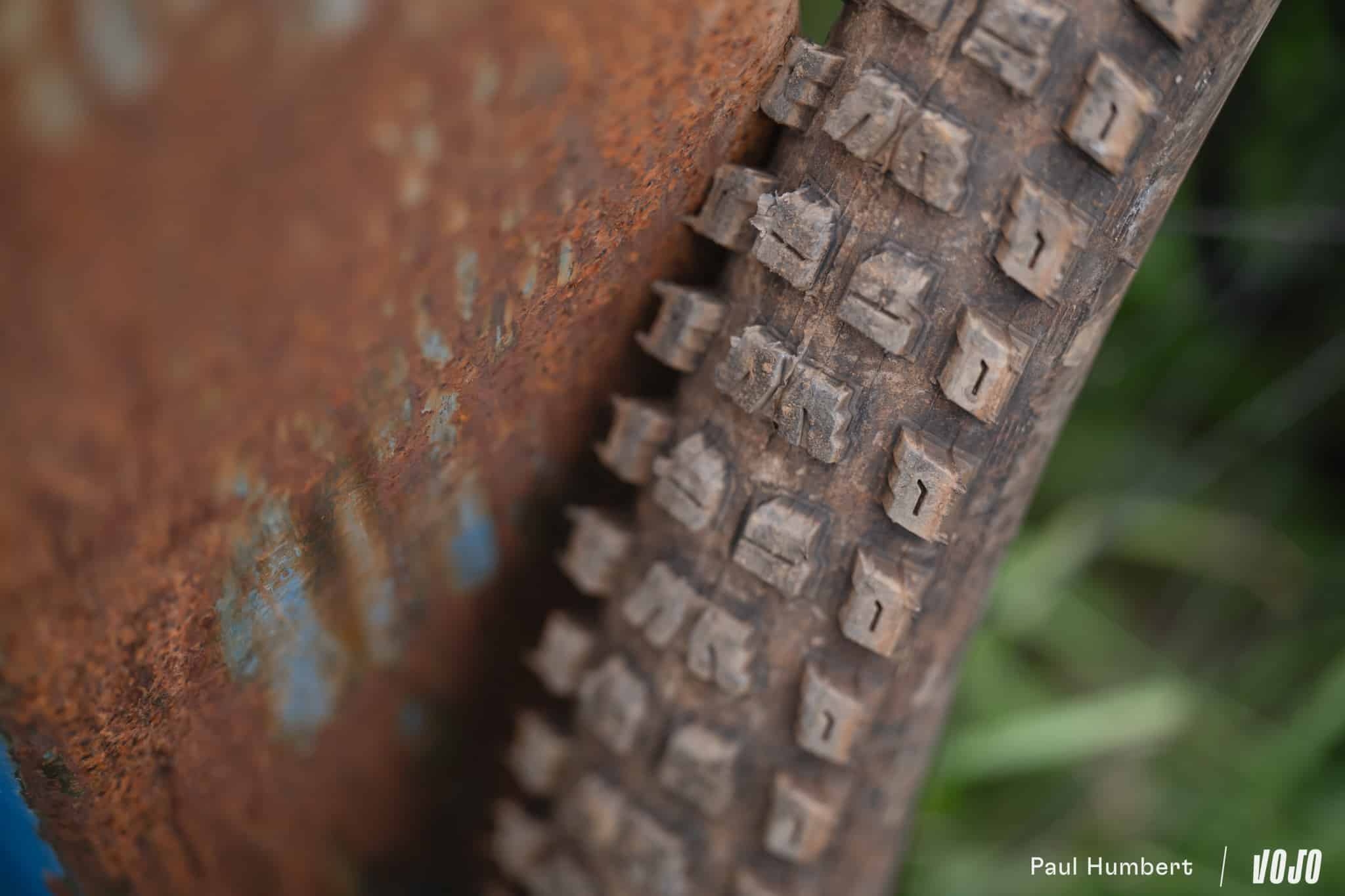 T5 : C’est la gomme utilisée pour le cross-country. Elle est définie par la marque comme « rapide et vivante », tout en apportant un bon grip en terrain mouillé. D’après la marque, elle résiste très bien à l’usure et aux entailles.