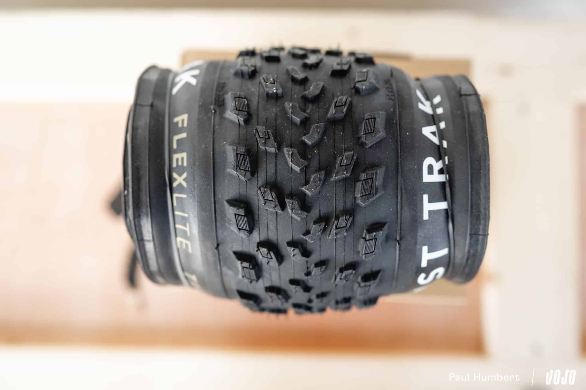 On retrouve également la gomme « dure » T5 sur le centre du pneu et Specialized annonce que ce nouveau modèle roule « 5% plus vite que le précédent S-Works Fast Trak ». Sur les côtés, on retrouvera la gomme T7. La marque annonce 55 g de moins en carcasse Flex Lite par rapport à la gamme précédente. Et 110 g de moins en Grid Lite par rapport à l’équivalent précédent.
