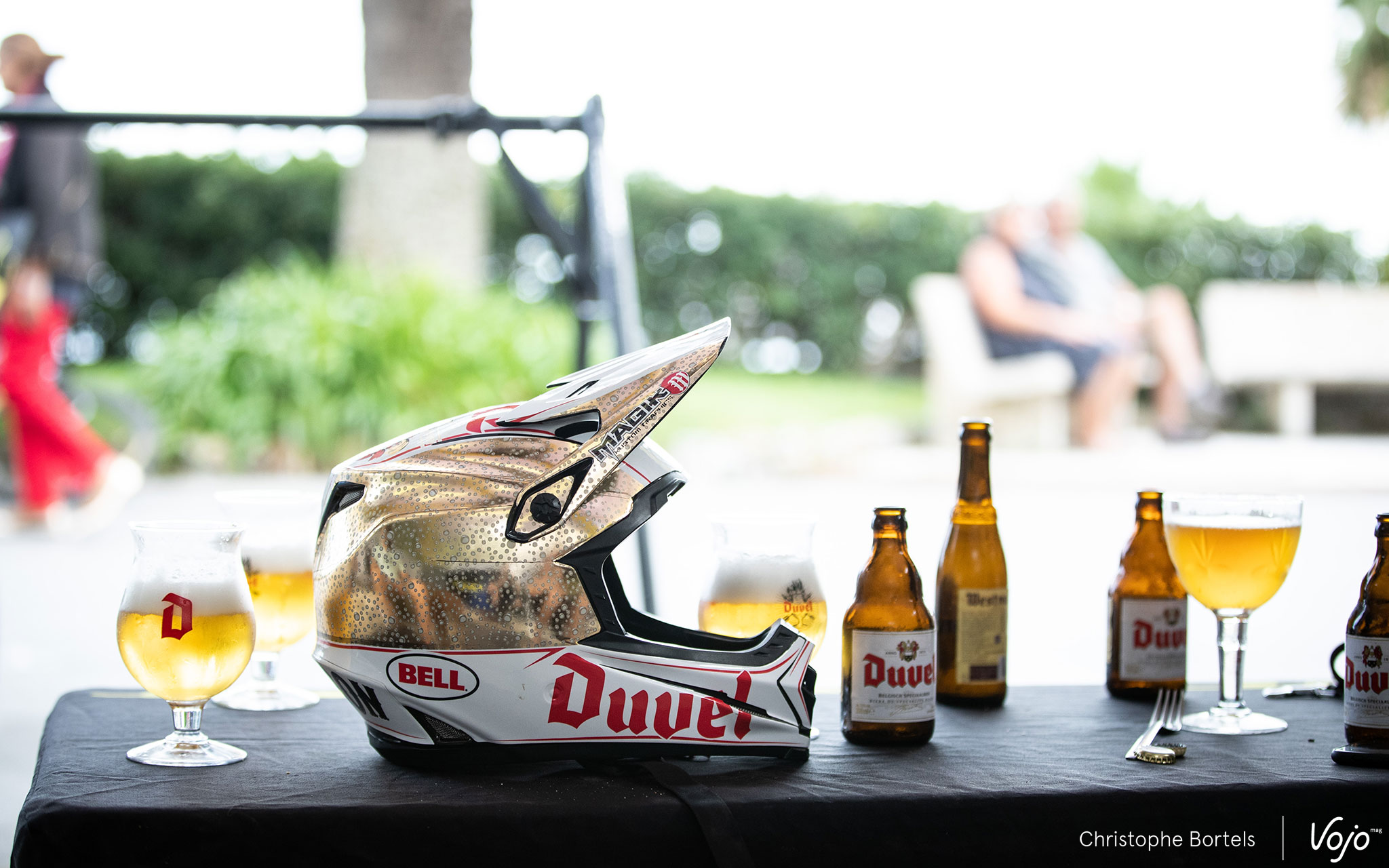 Le Trophée des Nations, c’est aussi l’occasion d’arborer des décos spéciales, comme celle de ce casque aux couleurs d’une célèbre bière belge, porté par Mark Maurissen. Le team manager de Martin Maes roulera dimanche dans l’équipe Industry de GT.