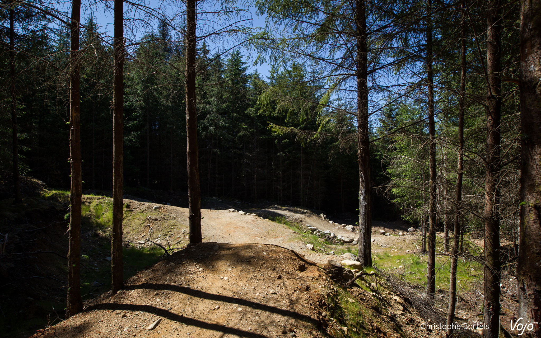 Tout en bas, à quelques mètres de la piste de Coupe du monde, on découvre dans les sous-bois de magnifiques petites traces qui semblent bien ludiques.