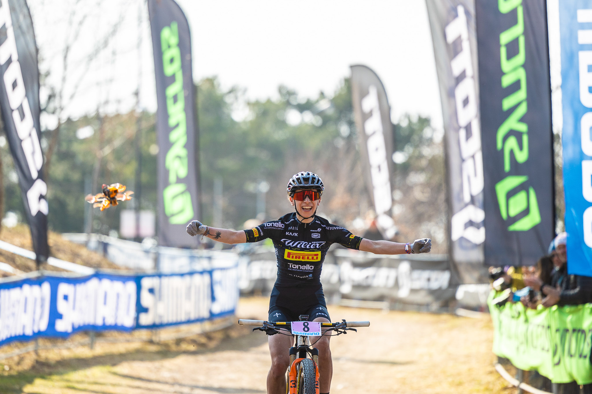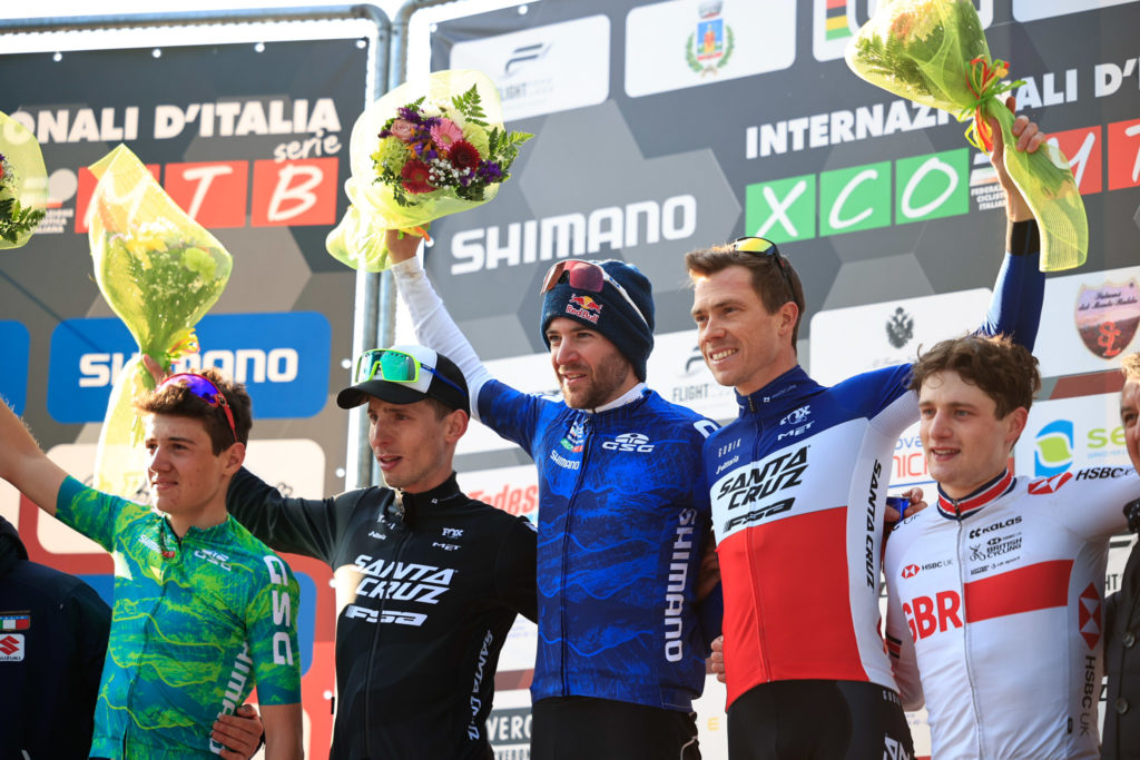 On commence avec l’Italie où avait lieu la première manche des Internationaux d’Italie, un championnat de début de saison apprécié des pilotes. Le plateau était particulièrement relevé chez les hommes et après un peu moins d’1h30 de courses, c’est Lars Forster qui s’est imposé pour sa reprise. Il devance deux pilotes du team Santa Cruz FSA, Luca Braidot et Maxime Marotte. Le Français aurait même pu espérer mieux mais une crevaison l’a contraint à s’arrêter en zone technique.