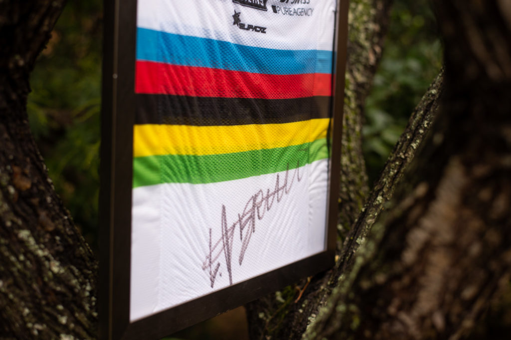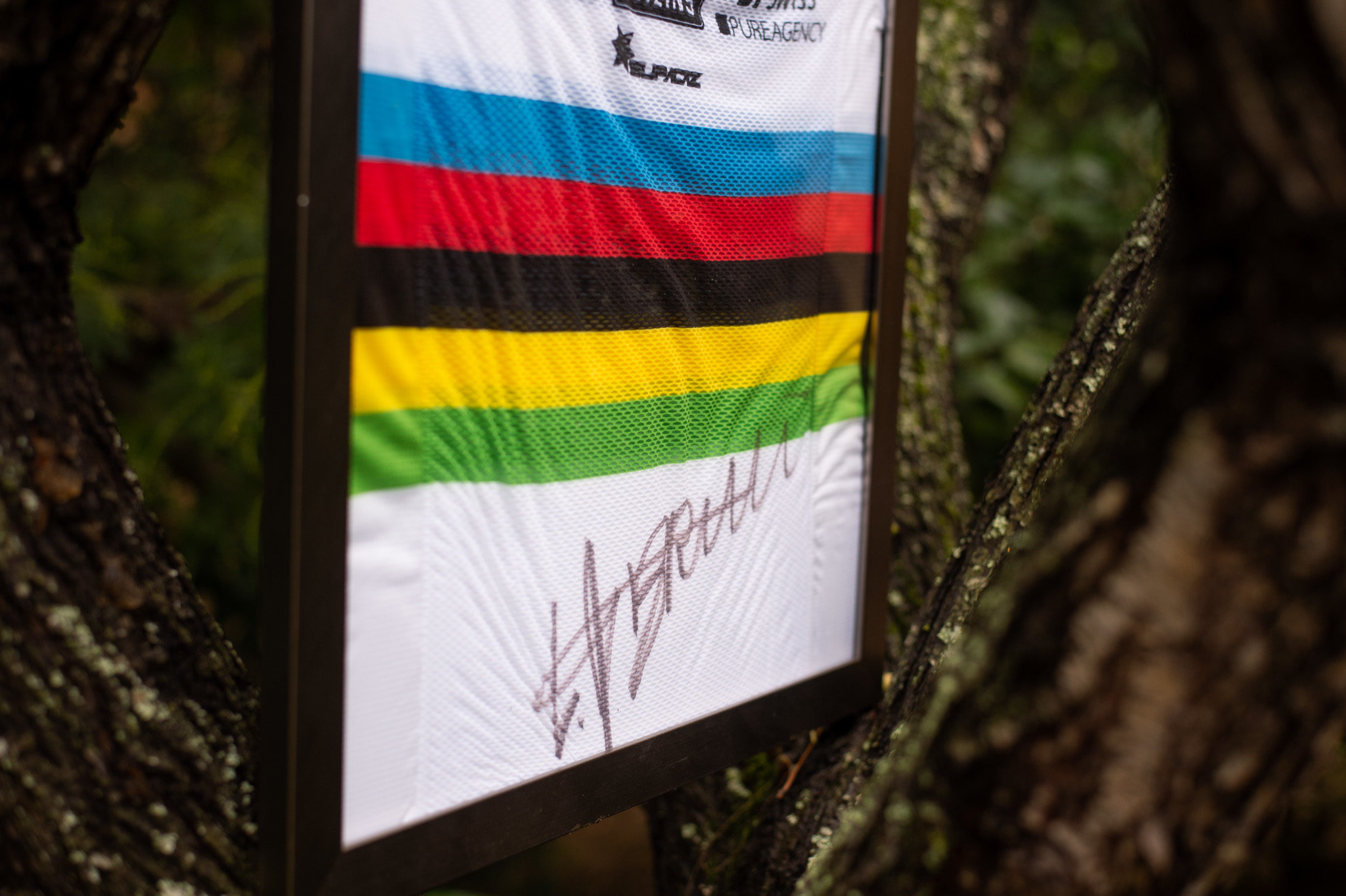 Vous avez pu l’apercevoir sur notre stand pendant le Roc d’Azur : le maillot de champion du Monde dédicacé de Loïc Bruni. Offert par son sponsor Magura à la rédaction de Vojo, c’est presque à regret que nous mettons en jeu ce maillot arc-en-ciel signé de la main du pilote Specialized Gravity !