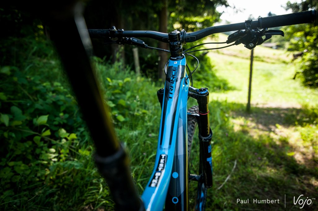 Par rapport au modèle précédent, le Trance s’allonge de 1cm, alors que ses bases se raccourcissent de 5mm et que le boitier de pédalier descend lui aussi de 5mm. L’angle de direction reste ouvert à 67 degrés, le reach s’allonge et le vélo devient on ne peut plus polyvalent. Tous les vélos de la gamme sont désormais au standard Boost.