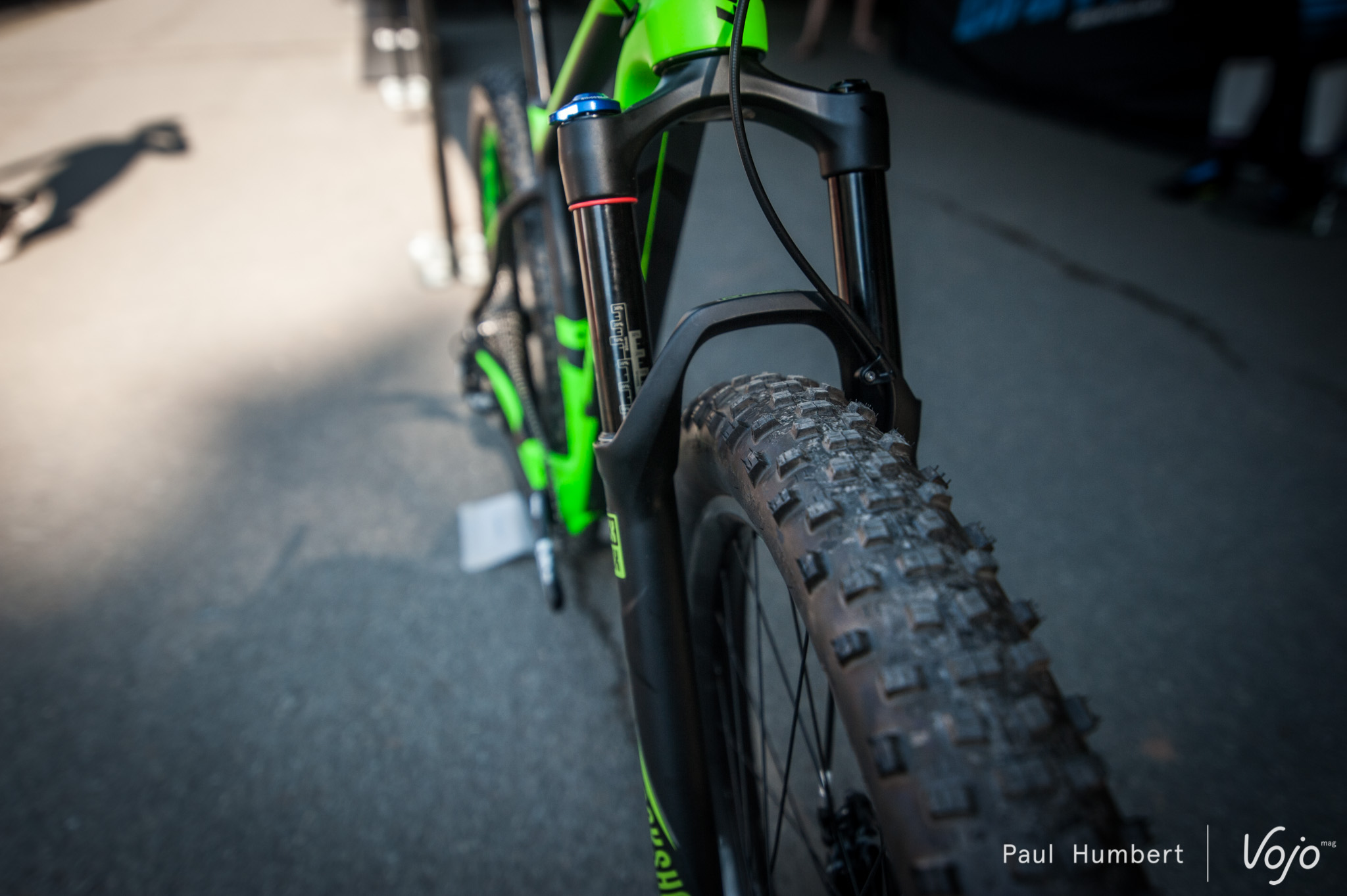 Le vélo est équipé de jantes de 30mm de large et de pneus de 2.6 pouces (retenez bien cette section, vous en entendrez beaucoup parler en 2017). Il sera toutefois possible d’installer des pneus jusqu’à 3 pouces de large. On retrouve bien évidemment une interface boost à l’avant comme à l’arrière.
