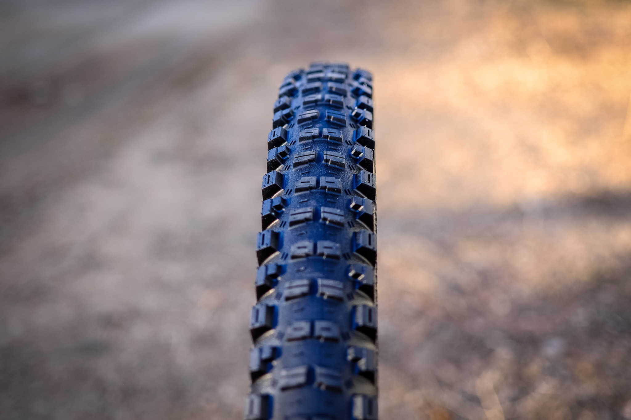 En 27,5″, le poids annoncé oscille ainsi entre 645 et 715 grammes, et entre 697 et 772 grammes en 29″. Goodyear annonce avoir développé ses propres gommes, que l’on ne retrouve donc nulle part ailleurs. Le Peak se dote d’une gomme Dynamic A/T, pour All-Terrain, à plusieurs densités comme toutes les gommes présentées.