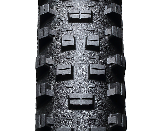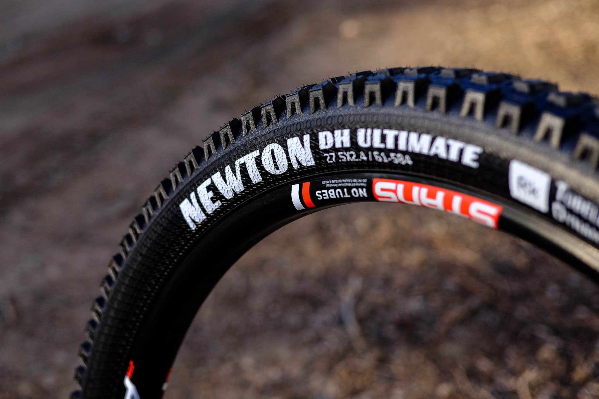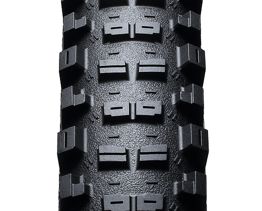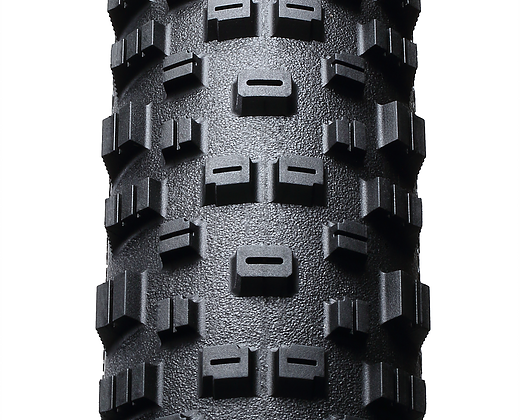 Nous montons encore d’un cran vers les pratiques « Gravity » avec le bien nommé Goodyear Newton et ses crampons généreux. Les pratiques visées sont l’enduro et la DH. Disponible en sections de 2.4″ et 2.6″ en 27.5″ comme en 29″, le Newton ajoute encore des possibilités de gommes et de carcasses par rapport à l’Escape… Le renfort DH (2 plis), en complément à l’enveloppe Ultimate, améliore la rigidité des flancs et la longévité des pneus.
