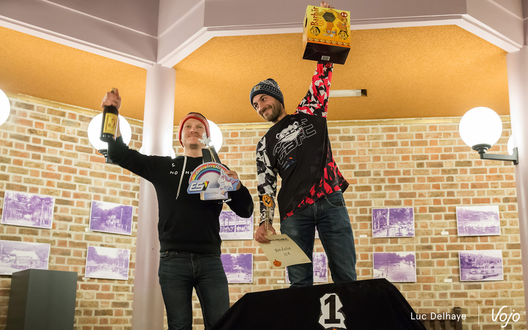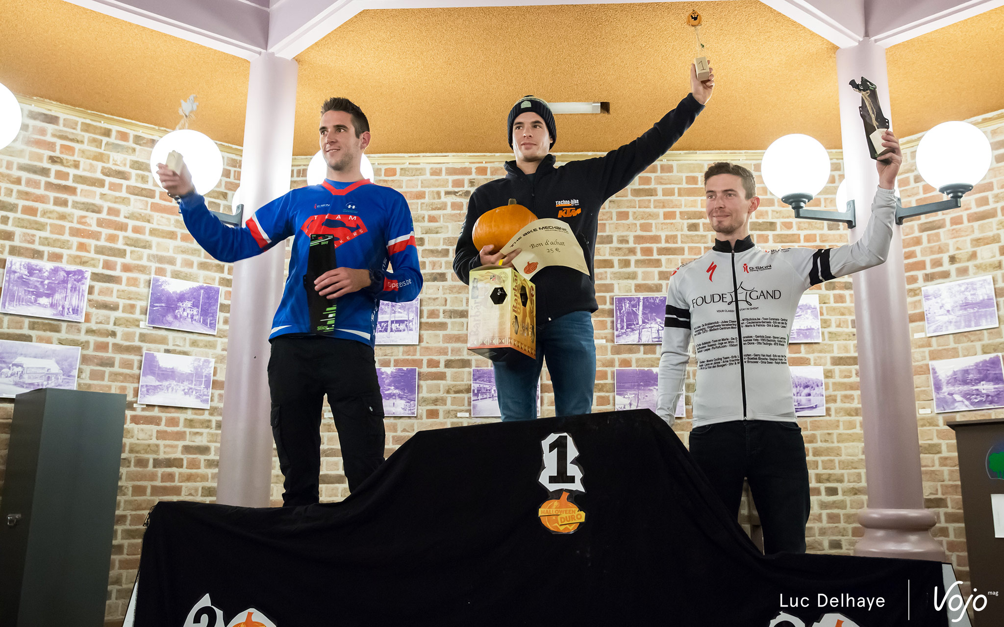 Le Français Sébastien Lefèvre, 19e au scratch, monte sur la plus haute marche du podium Master 1, avec à ses côtés Jeffry Goethals, 26e et 2e de la catégorie. Ronald Hubert, 3e, était quant à lui absent lors de la cérémonie des podiums.