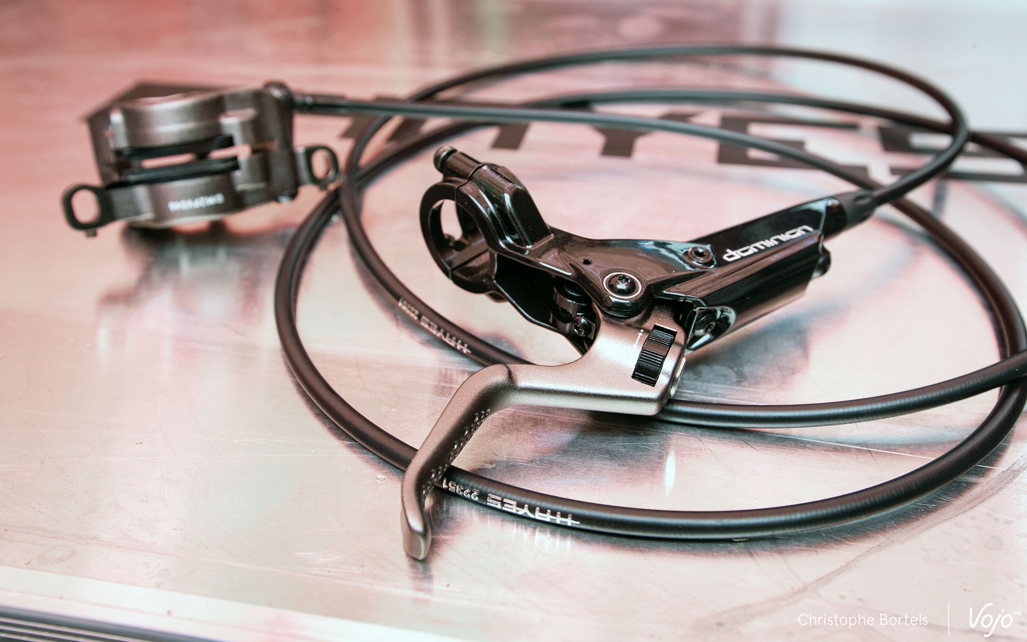 Enfin, Hayes annonce aussi de la nouveauté au rayons freins. A côté des Dominion A4 à 4 pistons, on retrouve désormais les A2 à… 2 pistons de 24mm. Un nouveau levier plus petit et plus fin est aussi proposé, l’ancien, plus large, restant au catalogue. On aura donc le choix entre les deux lors de l’achat. Le poids annoncé par frein est de 303g et le prix public de 235€.