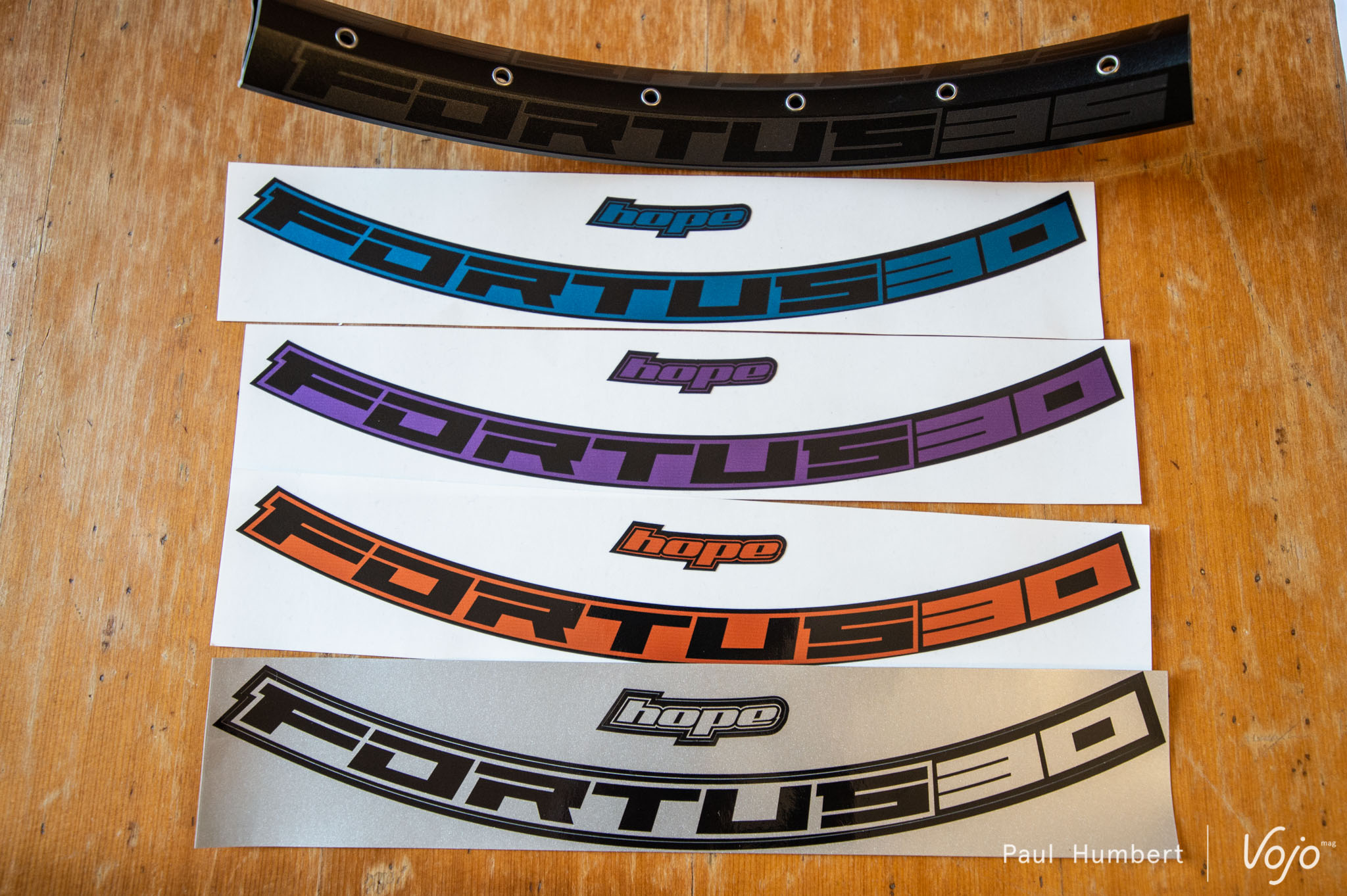 En 27,5, les Fortus sont disponibles en 23 (420g), 26 (545g), 30 (675g) et 35 (575g) mm. En 29 pouces, les largeurs et poids annoncés sont les suivants : 23 (450g), 26 (500g), 30 (720g) et 35 (610g) mm. Afin de s’adapter aux contraintes de chaque taille, le profil et la construction des jantes évoluent. On remarque notamment les renforts pour la jante de 30mm dédiée aux pratiques engagées. Sur toute la gamme, un tarif unique est pratiqué : 110€.