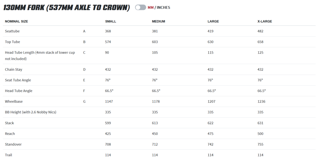 Comme évoqué plus haut, les principales évolutions concernent la géométrie. Les bases sont raccourcies de 11 mm et l’angle de chasse couché de 1° tandis que le tube de selle se redresse de 3°. Tout cela participe à rallonger le vélo qui gagne ainsi 2 cm d’empattement mais surtout 45 mm de reach en moyenne ! Il atteint désormais 450 mm en taille M contre 411 mm sur l’ancien Ripley LS (LS qui signifiait Low and Slack…).