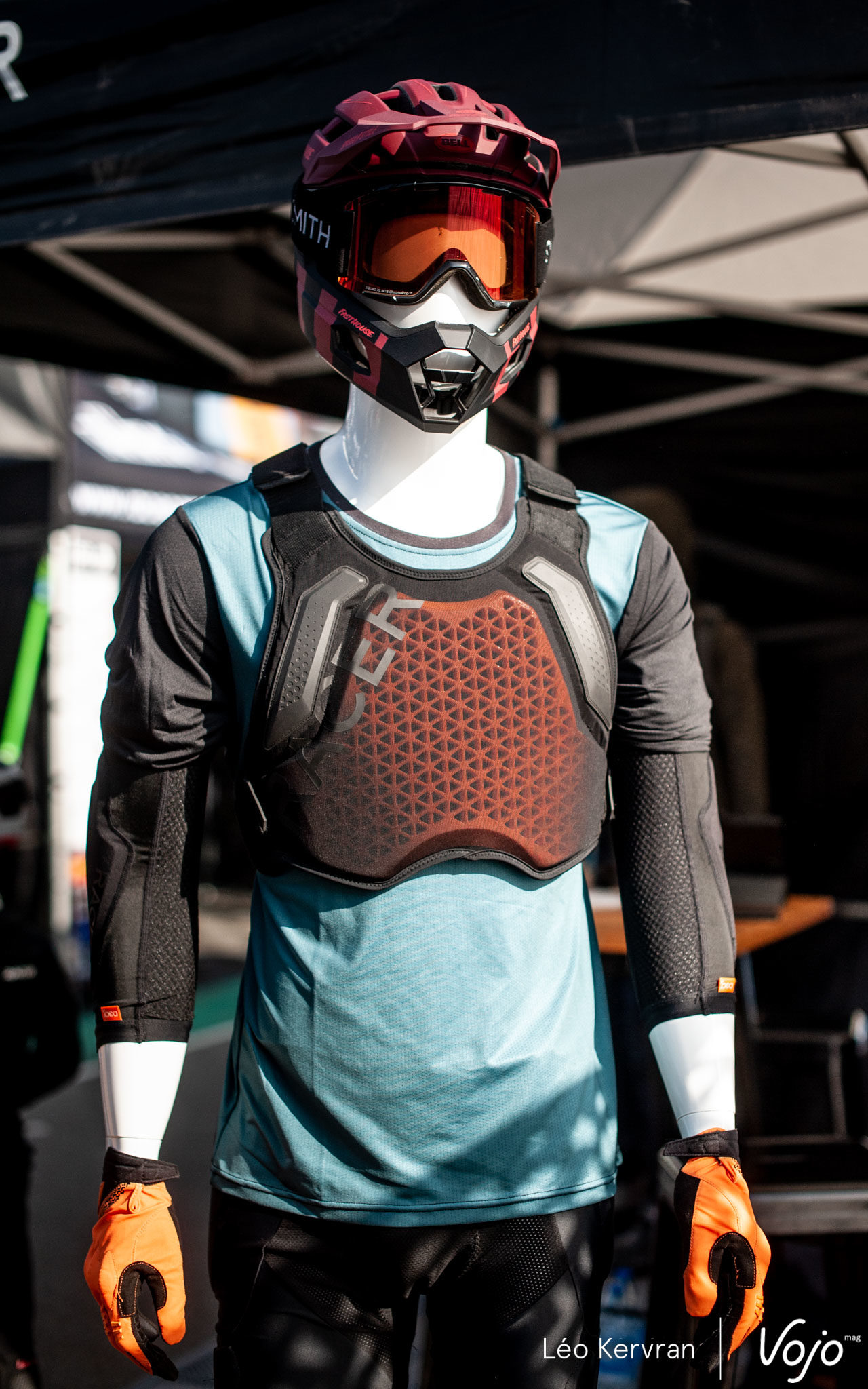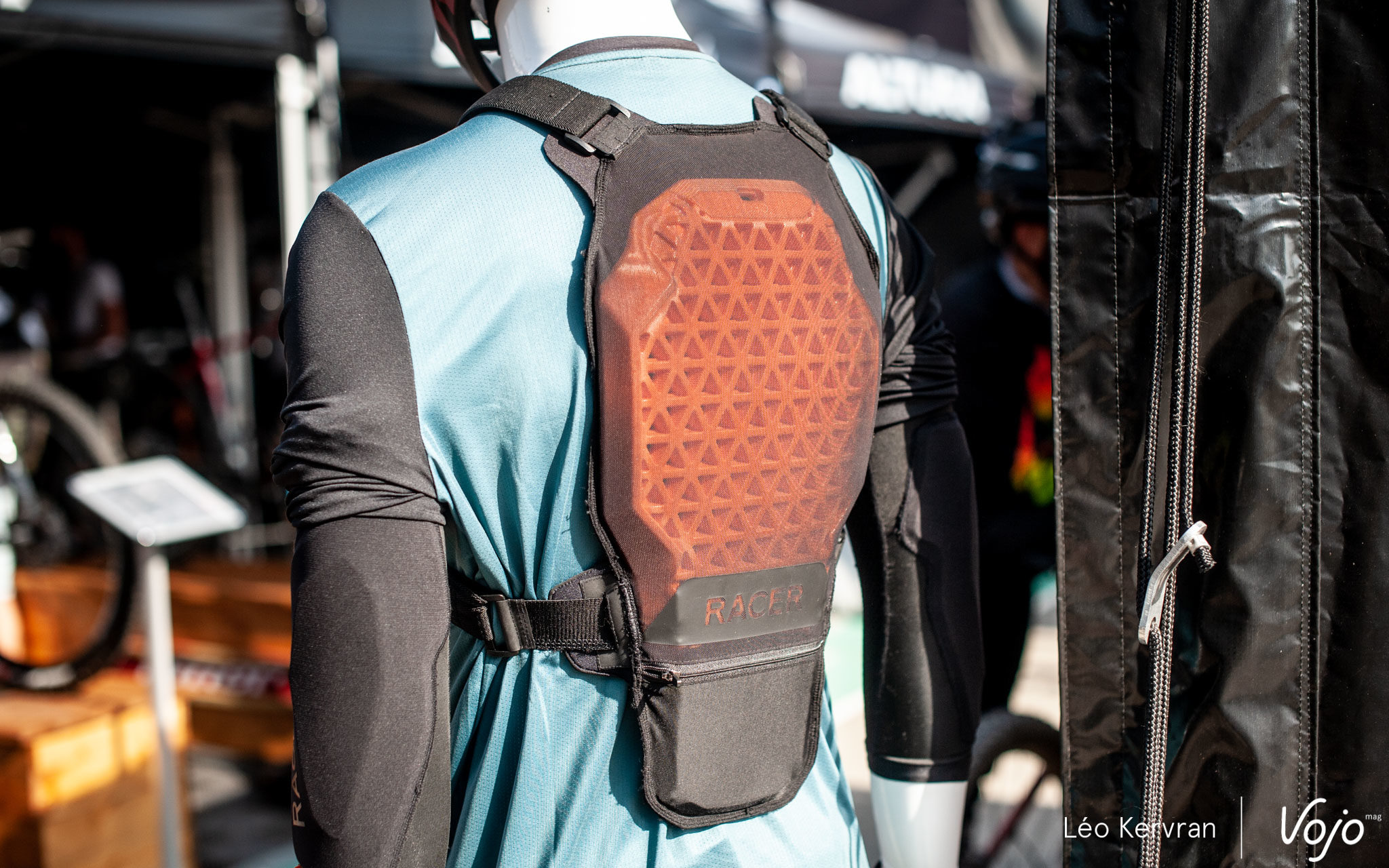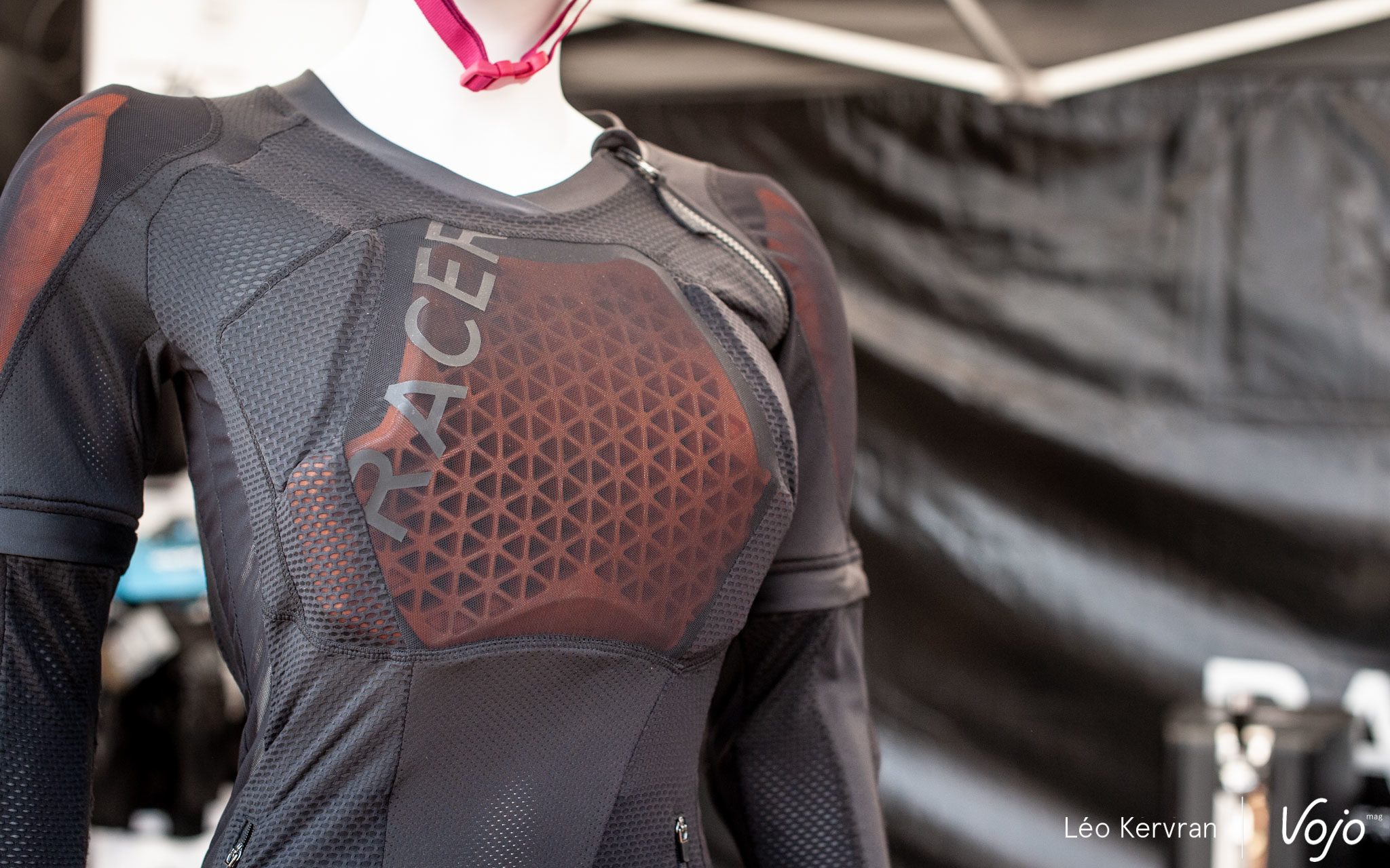 Sur l’autre mannequin, on découvrait un ensemble dorsale-plastron baptisé Alpha, un élément de protection très en vogue aujourd’hui chez elles et ceux qui souhaitent plus de confort qu’avec un gilet complet sans négliger la protection des parties les plus importantes. Ajustable via 4 scratchs sur les épaules et les flancs, il sera affiché à 189,95 €.