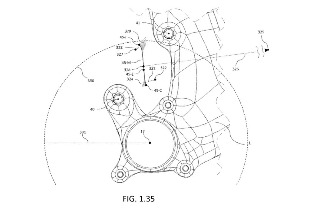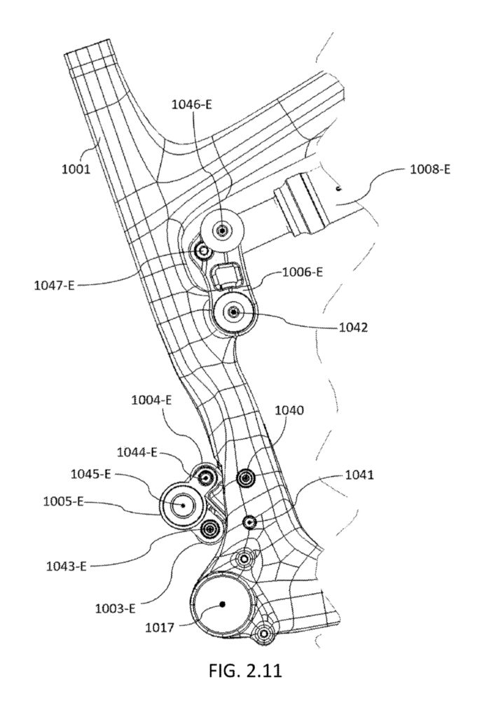 Cependant, on saisit bien vite que ce nouveau système de suspension a un autre avantage de taille sur l’actuel Switch Infinity : il prend beaucoup moins de place dans le cadre. Dans le document, les inventeurs expliquent que cet encombrement réduit peut offrir « un avantage de performance permettant un virage plus rapide », puisque les bases peuvent être plus courtes, mais aussi une meilleure rigidité grâce au dégagement supplémentaire qui « laisse également de la place pour un « pont » plus grand reliant les côtés entraînement et non-entraînement du corps de bras oscillant ».