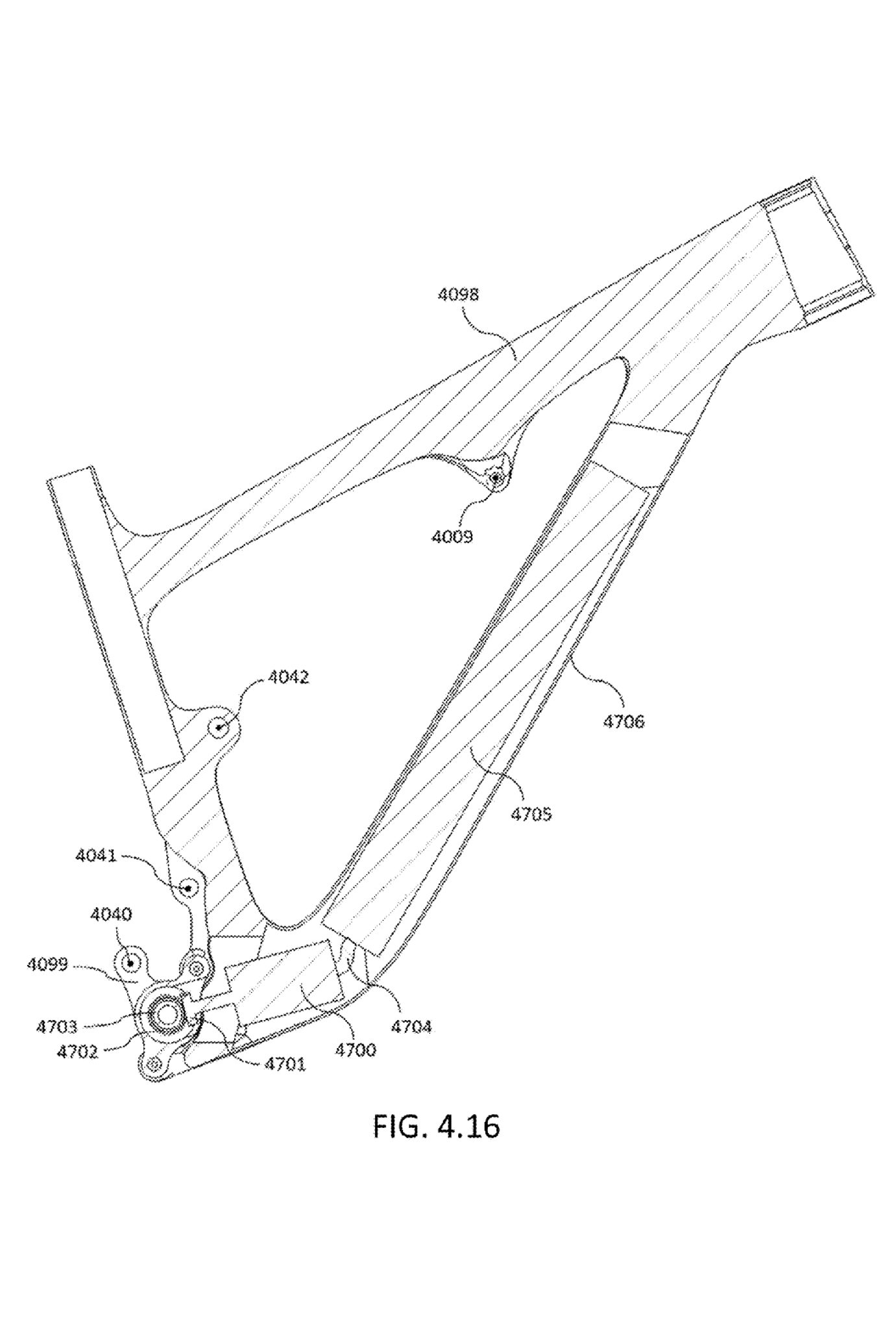 Toutefois, ce brevet pourrait n’être qu’un n-ième brevet sur un système de suspension un peu original si Yeti n’avait pas glissé, à la toute fin du document, un passage sur la potentielle compatibilité d’un tel système avec une boîte de vitesse ou une assistance…