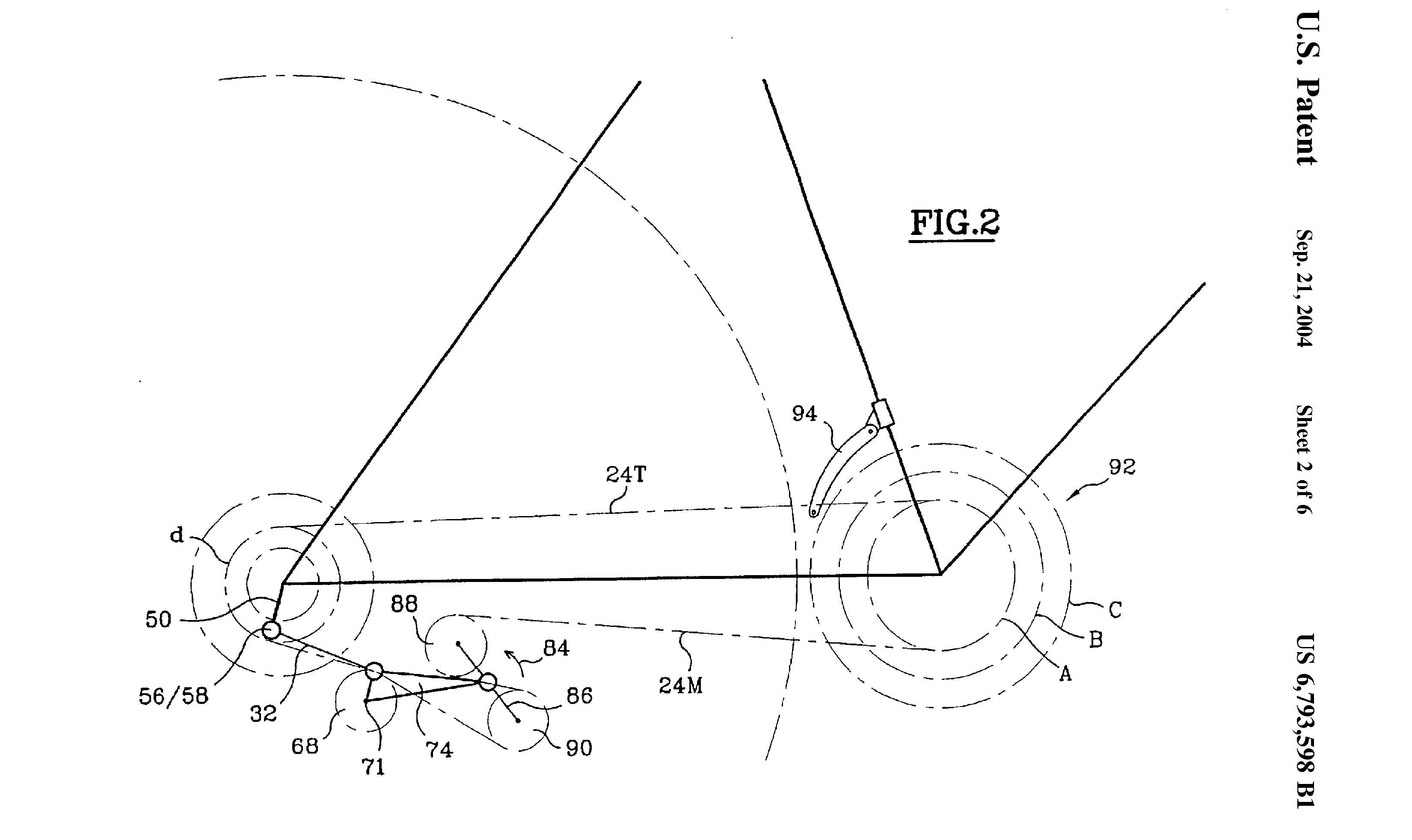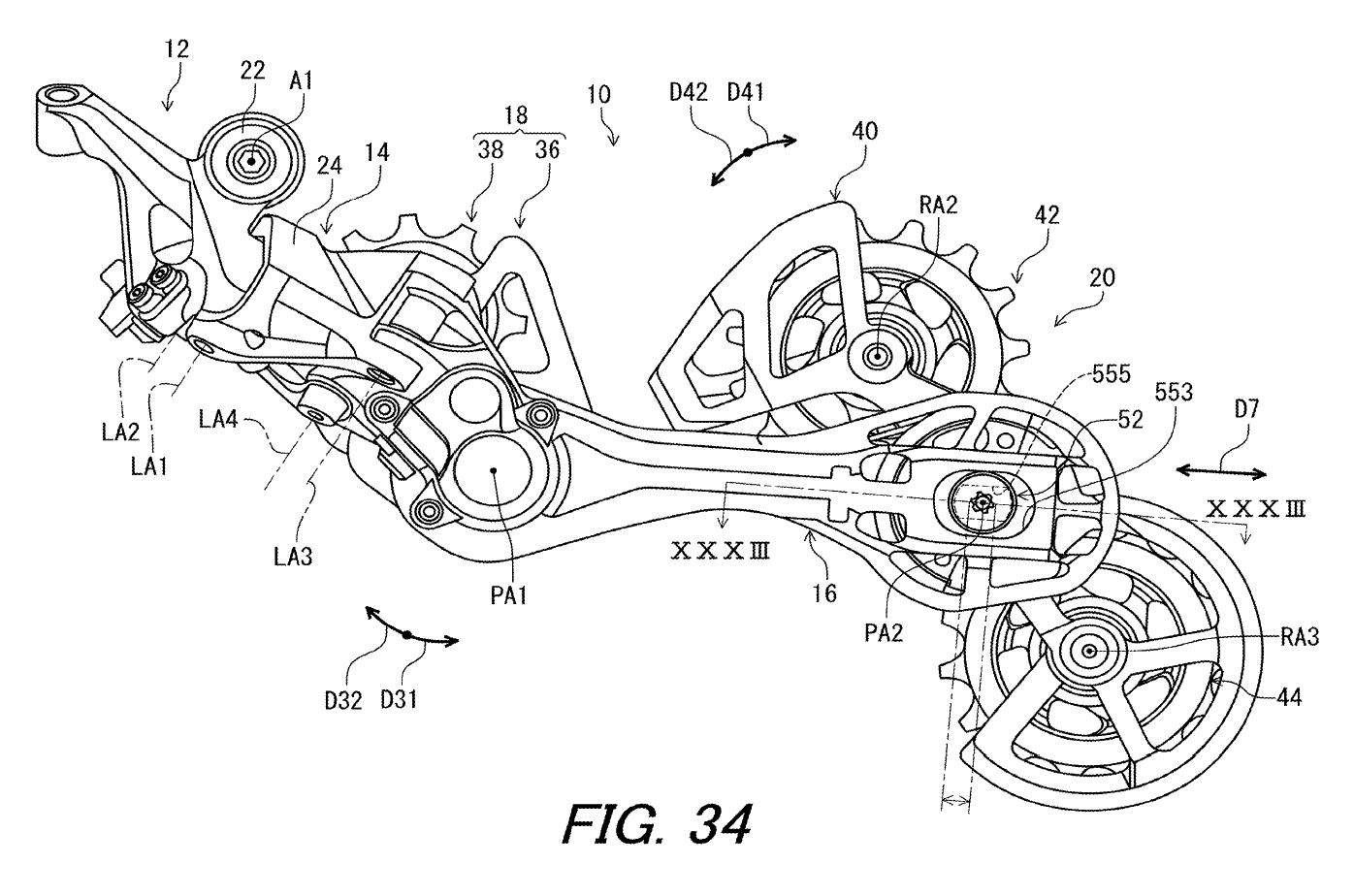 Contrairement au brevet de dérailleur en montage direct dont on vous parlait il y a peu (lire Innovations | Du dérailleur en montage direct chez Shimano ?), très flou et qui donnait surtout l’impression que la marque cherchait à nous jeter de la poudre aux yeux, celui-ci est d’une précision exceptionnelle. Angles vis-à-vis du parallélogramme, chape, relations de distances et de tailles entre les différents éléments… On ne serait pas surpris d’apprendre que ce dérailleur approcherait déjà la phase de production.