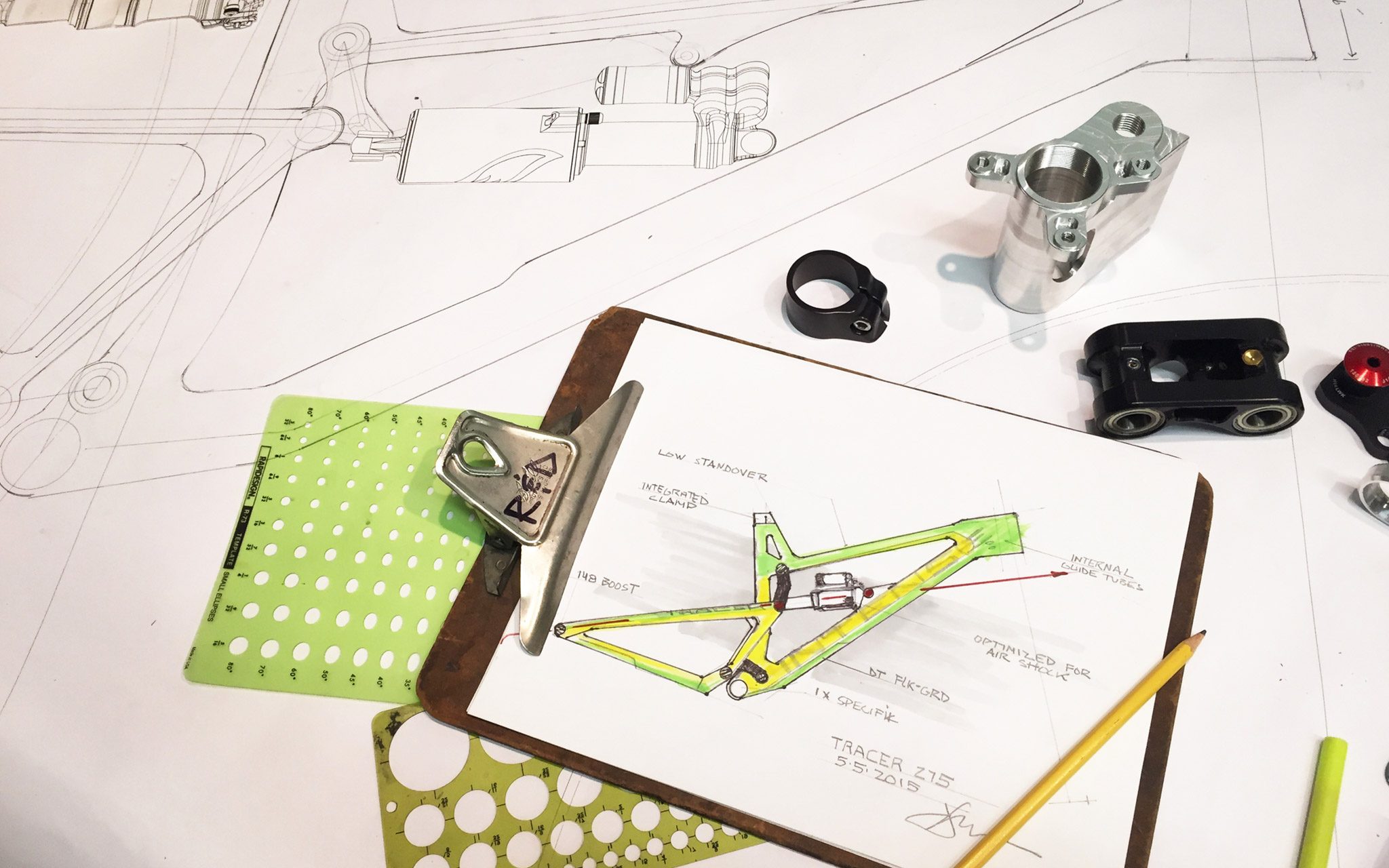 Au manettes, c’est toujours Jeff Steber qui dessine et prototype les premiers vélos de la production Intense. Le charismatique designer a également donné son nom à la suspension, un VPP revisité : la JS Suspension. Toutefois, pour le Tracer 27,5C, Intense est allé à la rencontre du bureau de design Cero en Espagne.