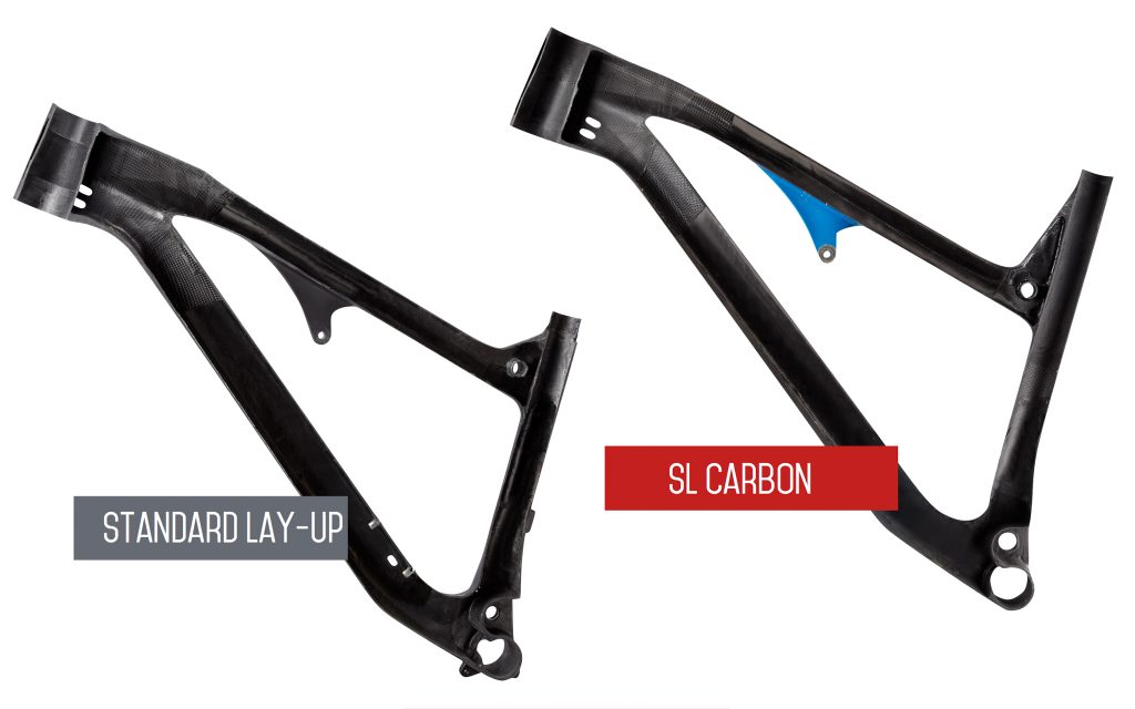 Sur le vélo, la taille des roulements a été revue à la hausse et le standard boost est adopté à l’avant(110mm) comme à l’arrière (148mm). Le vélo développera 165mm de débattement à l’arrière.