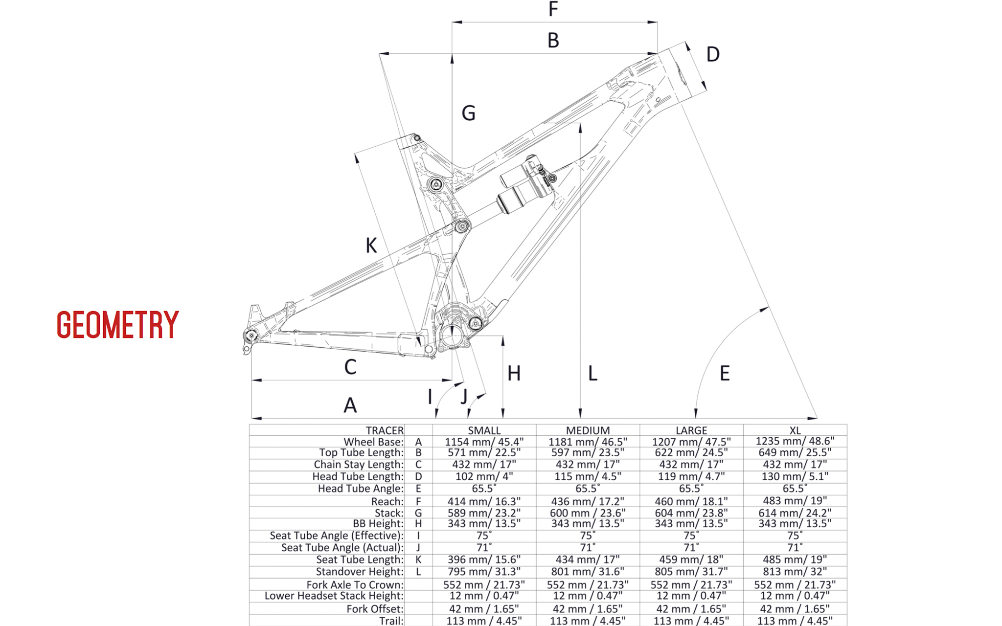 Côté géométrie, le nouvel Intense Tracer « engage » avec un angle de direction de 65,5 degrés, des bases de 432mm et un boitier à 343mm du sol. Le reach affiché est de 436mm en taille M avec un stack de 600mm.