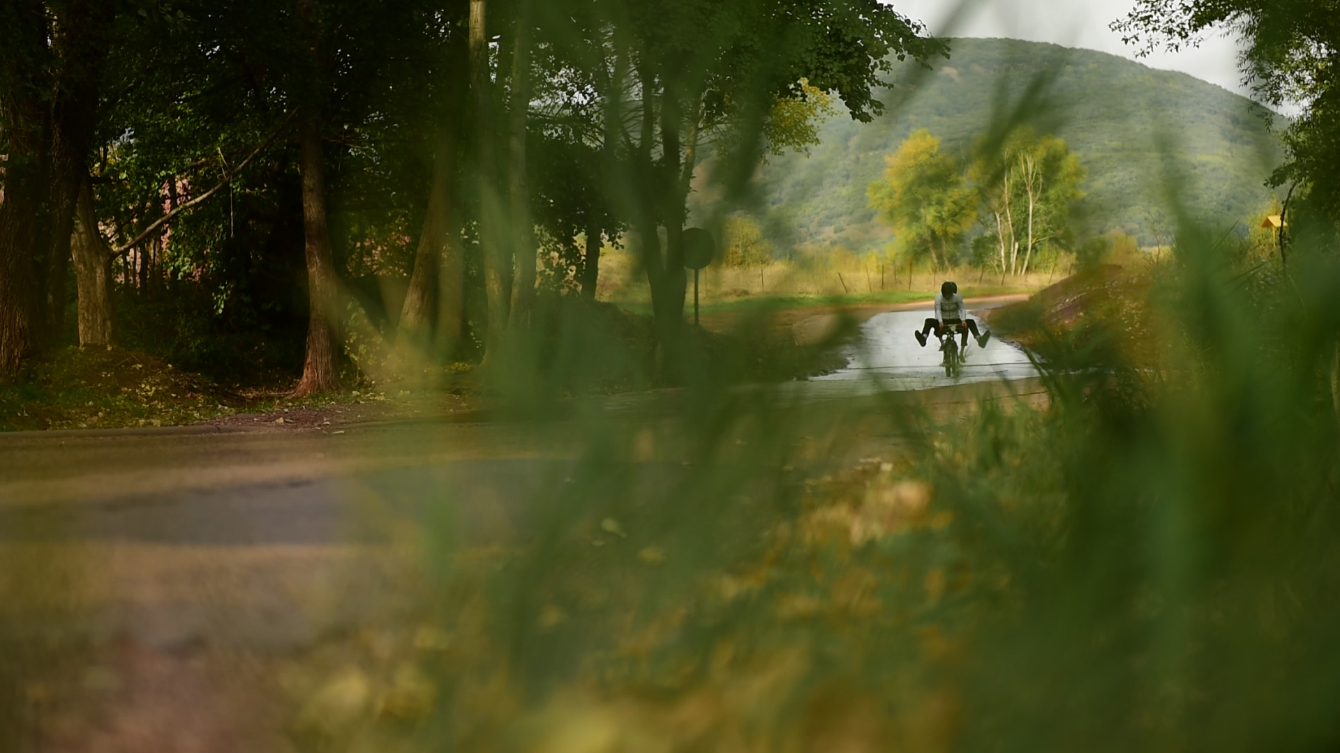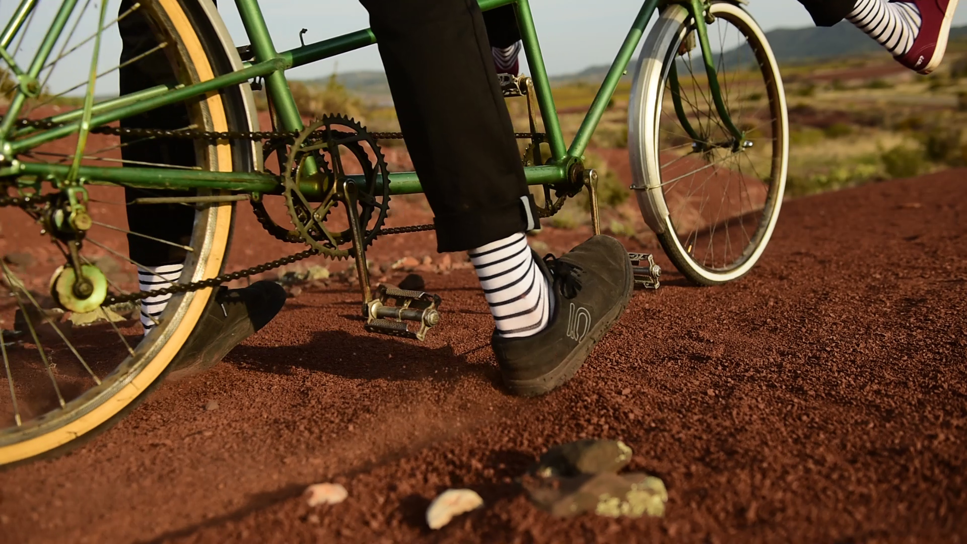 Anne-Caroline Chausson avait déjà collaboré avec le cinéaste Rémy Masséglia sur « Régis 2 ». La 16 fois (il y a un mot pour ça? pour dire autant d’occurrences qui ont fait de son palmarès le plus garni de l’histoire du VTT?) championne du monde de DH avait apprécié l’univers barré du réalisateur, autant que les apéros de fin de tournage. Du coup, elle a remis ça pour « Jeanine & Longo ». Le film met en scène deux riders (ACC, donc, et le trialiste John Langlois), « doublures » de deux musiciens (Gwenn Masséglia et JP Bonfils). Deux duos juchés tour à tour sur un tandem La Rafale d’Après-Guerre aux freins plus qu’approximatifs. La championne olympique a répondu d’autant plus volontiers présente à l’appel que le tournage s’est déroulé sur les bords du lac du Salagou, dont elle a écumé les bords à vélo quand elle vivait à côté. « C’est toujours sympa de revenir rouler ici, j’en connais quasiment tous les sentiers, ça me rappelle des souvenirs », s’amuse celle qui était surnommée « Jeanine » dans les paddocks, en clin d’oeil à l’autre palmarès féminin du vélo, Jeannie Longo, tandis qu’elle indique la route à suivre pour rejoindre le prochain lieu de tournage. L’idée de cette nouvelle réalisation est venue à Rémy Masséglia en voyant ce vieux tandem délaissé accroché au mur d’un garage. Coup de foudre immédiat. « Jeanine & Longo » sort officiellement le dimanche 26 novembre à 18 heures. Une bonne pastille de belles images avant le film dominical. Rendez-vous est pris.