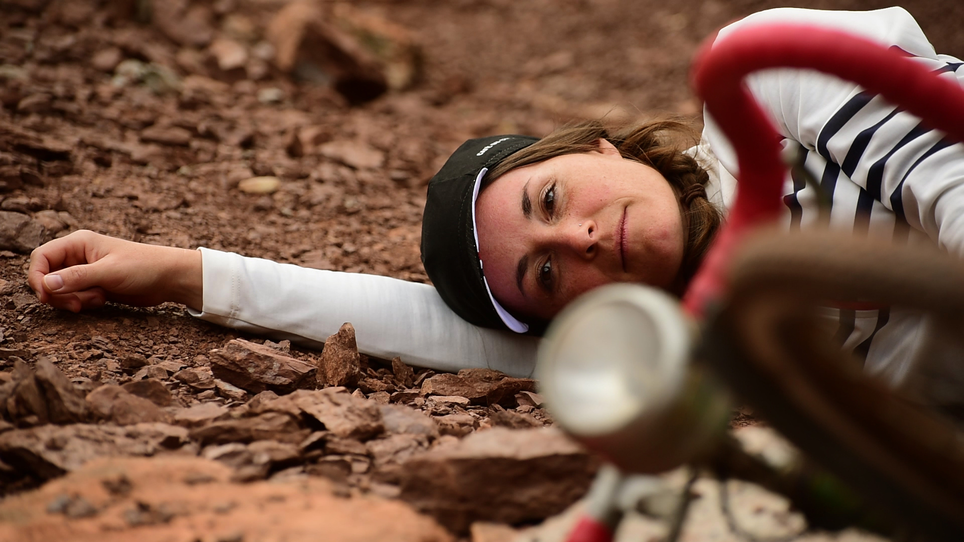 Anne-Caroline Chausson avait déjà collaboré avec le cinéaste Rémy Masséglia sur « Régis 2 ». La 16 fois (il y a un mot pour ça? pour dire autant d’occurrences qui ont fait de son palmarès le plus garni de l’histoire du VTT?) championne du monde de DH avait apprécié l’univers barré du réalisateur, autant que les apéros de fin de tournage. Du coup, elle a remis ça pour « Jeanine & Longo ». Le film met en scène deux riders (ACC, donc, et le trialiste John Langlois), « doublures » de deux musiciens (Gwenn Masséglia et JP Bonfils). Deux duos juchés tour à tour sur un tandem La Rafale d’Après-Guerre aux freins plus qu’approximatifs. La championne olympique a répondu d’autant plus volontiers présente à l’appel que le tournage s’est déroulé sur les bords du lac du Salagou, dont elle a écumé les bords à vélo quand elle vivait à côté. « C’est toujours sympa de revenir rouler ici, j’en connais quasiment tous les sentiers, ça me rappelle des souvenirs », s’amuse celle qui était surnommée « Jeanine » dans les paddocks, en clin d’oeil à l’autre palmarès féminin du vélo, Jeannie Longo, tandis qu’elle indique la route à suivre pour rejoindre le prochain lieu de tournage. L’idée de cette nouvelle réalisation est venue à Rémy Masséglia en voyant ce vieux tandem délaissé accroché au mur d’un garage. Coup de foudre immédiat. « Jeanine & Longo » sort officiellement le dimanche 26 novembre à 18 heures. Une bonne pastille de belles images avant le film dominical. Rendez-vous est pris.